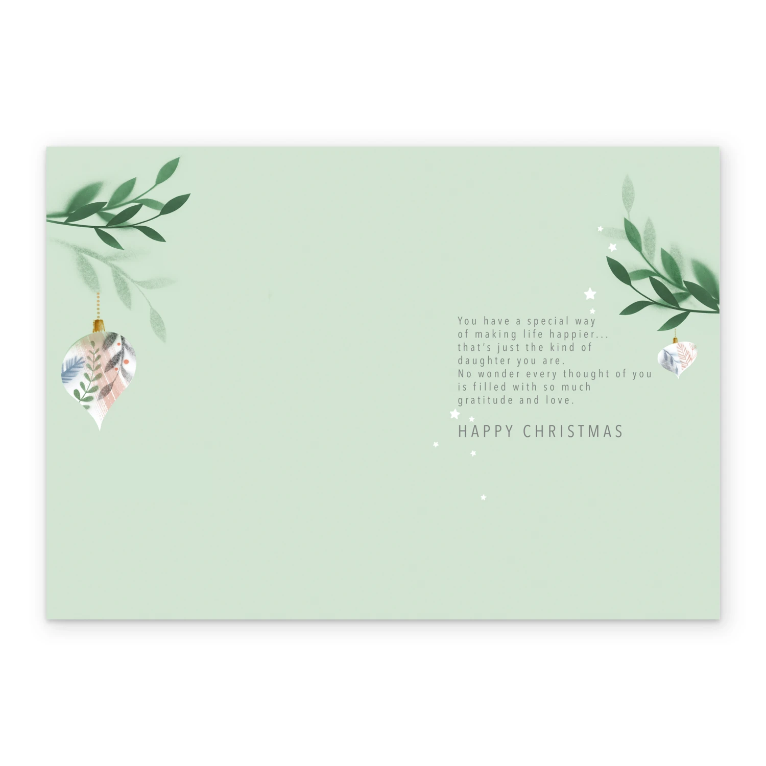 Show them you care with a personalised daughter special bauble Christmas card from Hallmark. Our greetings cards are printed on premium quality, FSC®-certified card & delivered nationwide. This card is available as standard 12cm by 16.7cm and large 15.5cm by 21.6cm.