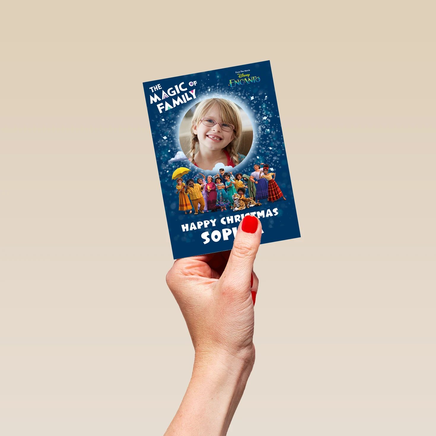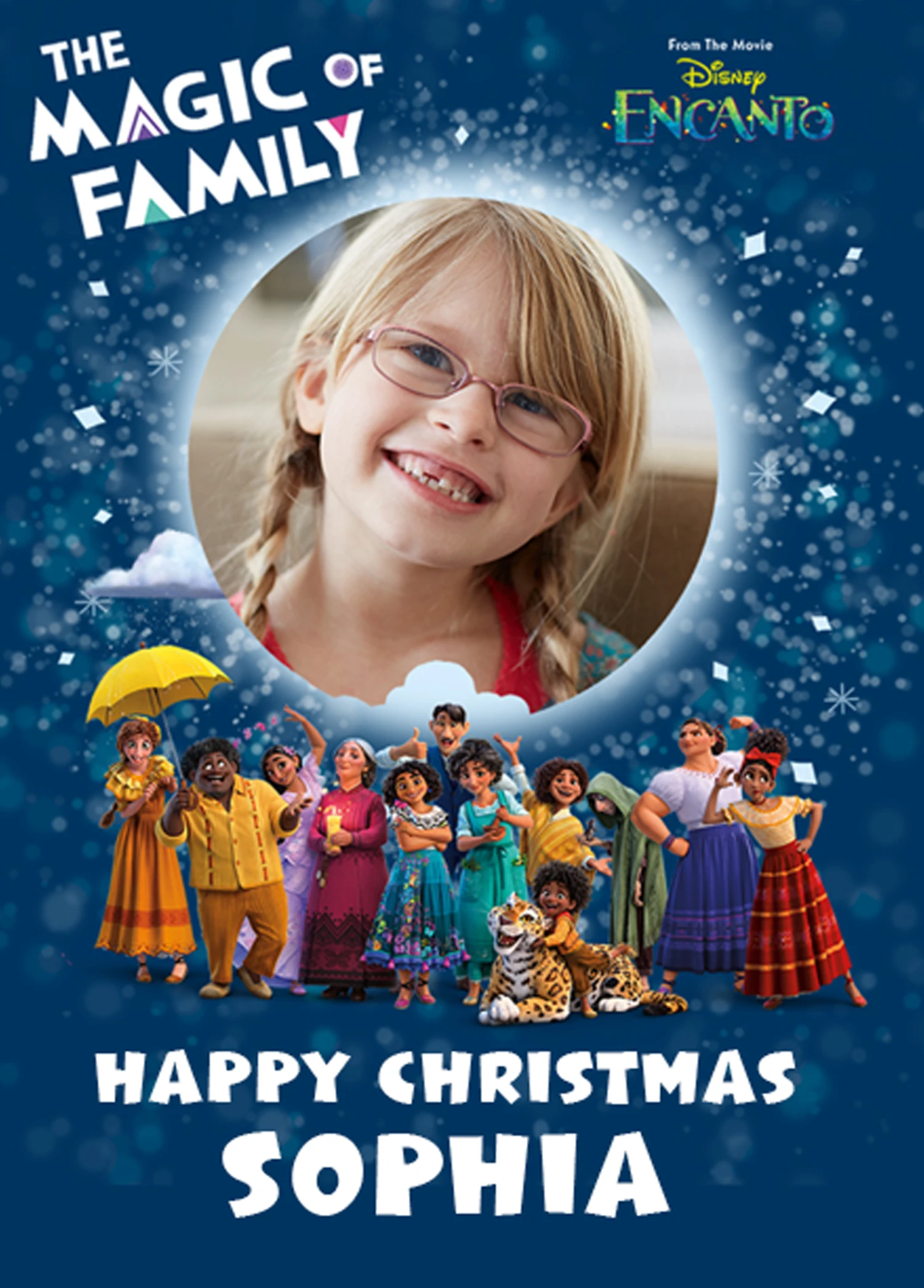 Show them you care with a personalised Disney Encanto photo upload Christmas card from Hallmark. Our Christmas cards are printed on premium quality, FSC®-certified card & delivered nationwide. This card is available as standard 12cm by 16.7cm and large 15.5cm by 21.6cm.