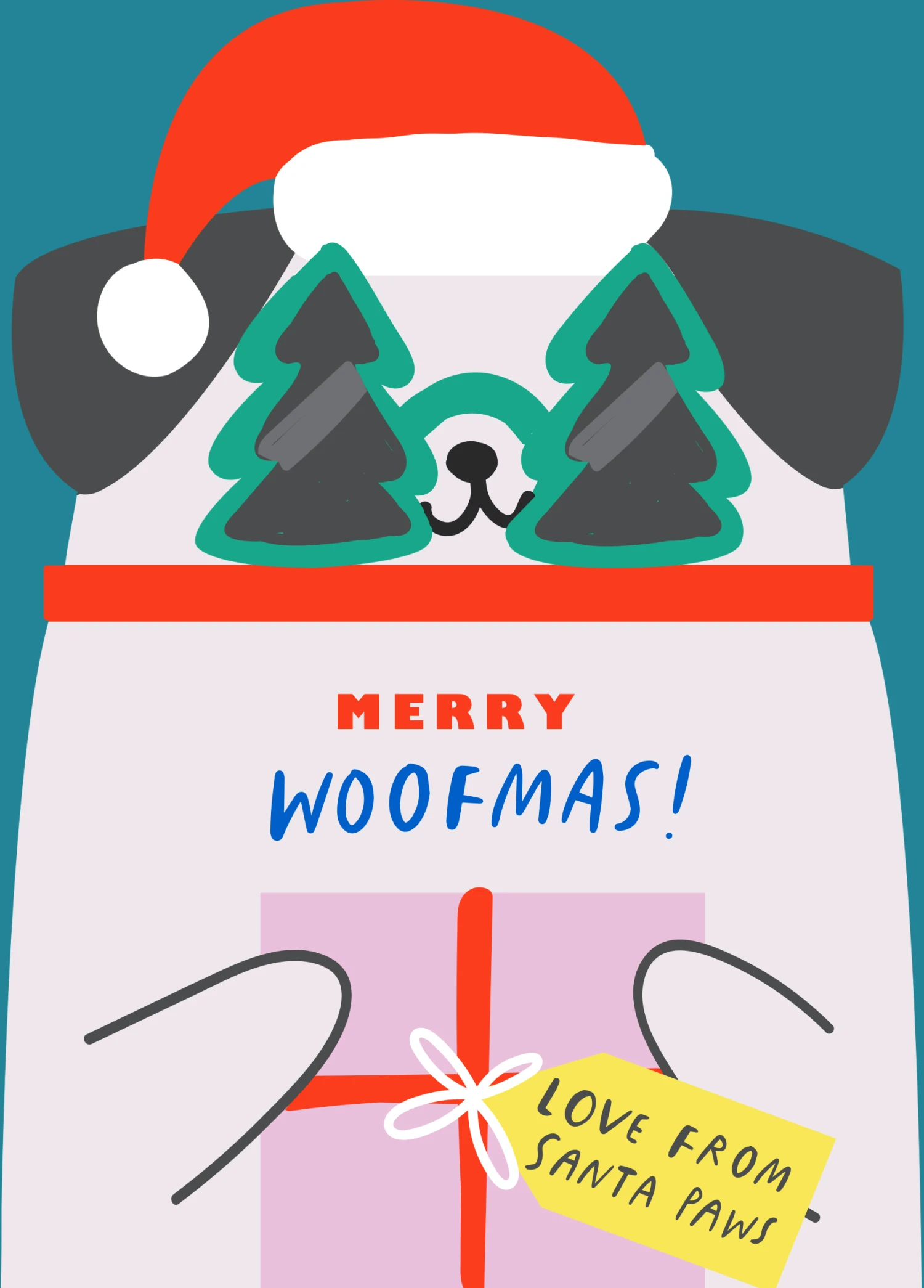 Pod Personalised Dog And Santa Christmas Card