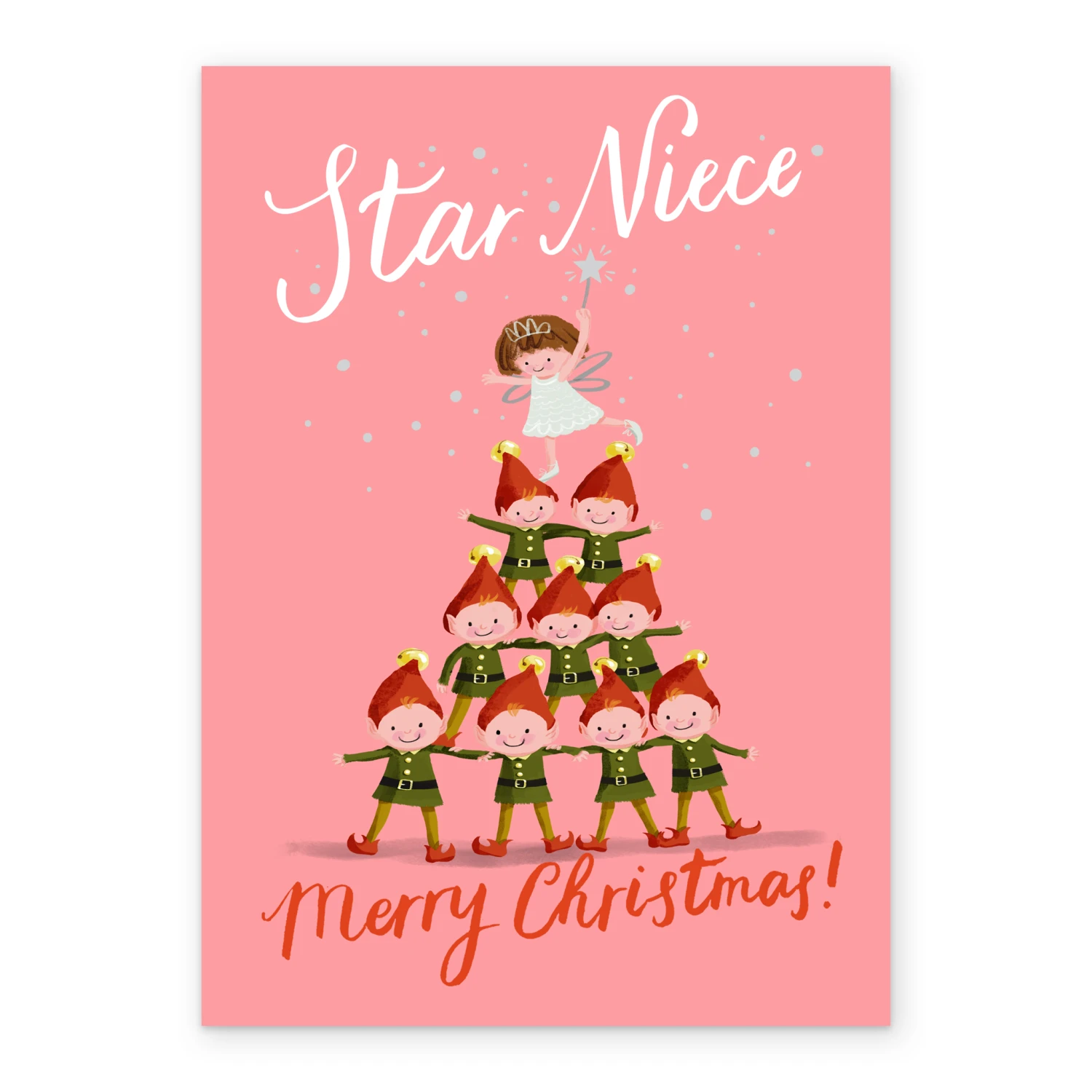 Show them you care with a personalised elves and Christmas tree niece card from Hallmark. Our Christmas cards are printed on premium quality, FSCĀ®-certified card & delivered nationwide. This card is available as standard 12cm by 16.7cm and large 15.5cm by 21.6cm.