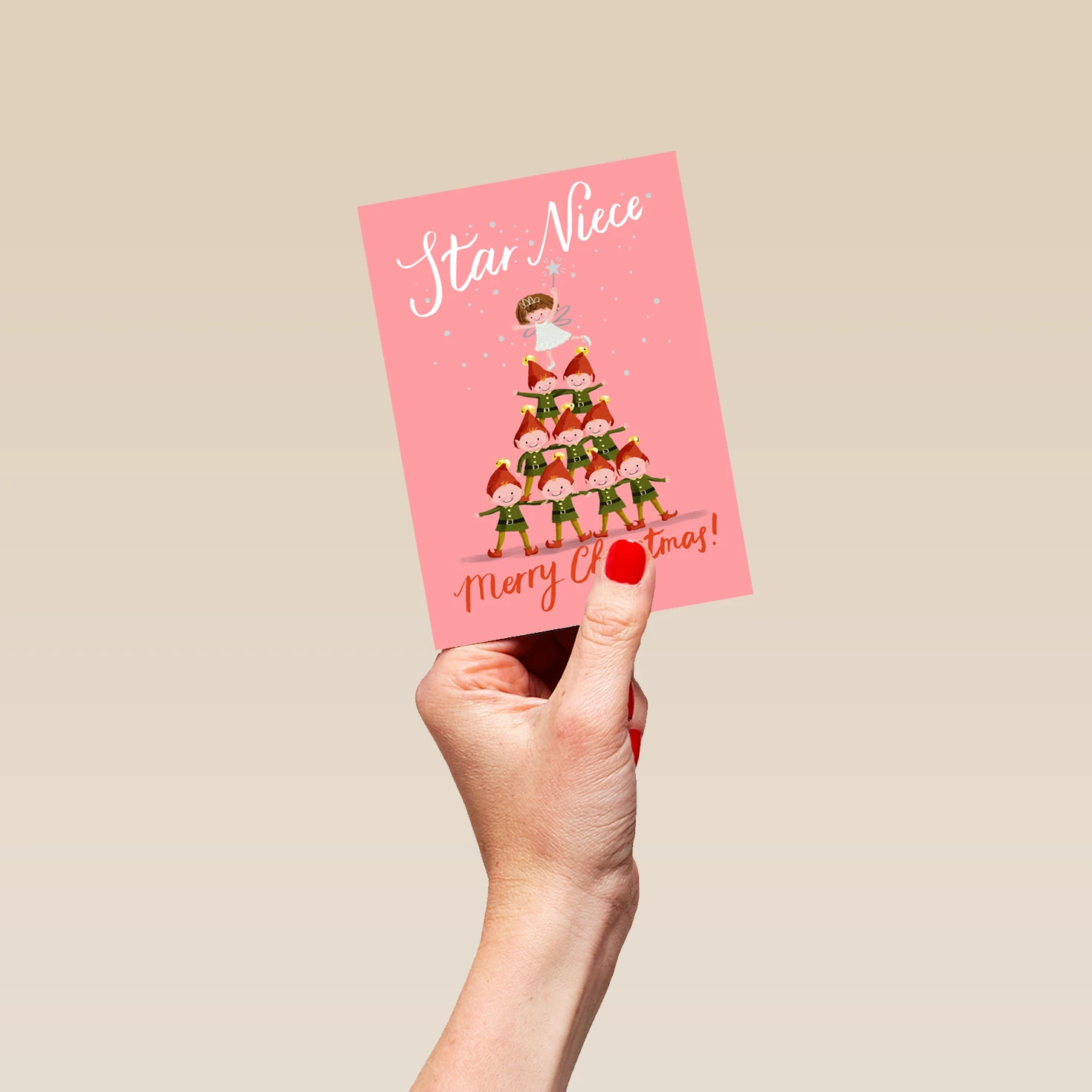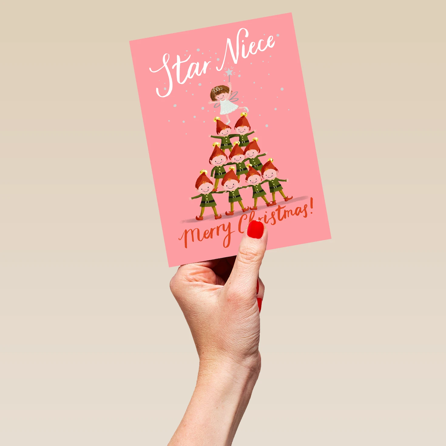 Pod Personalised Elves And Christmas Tree Niece Card
