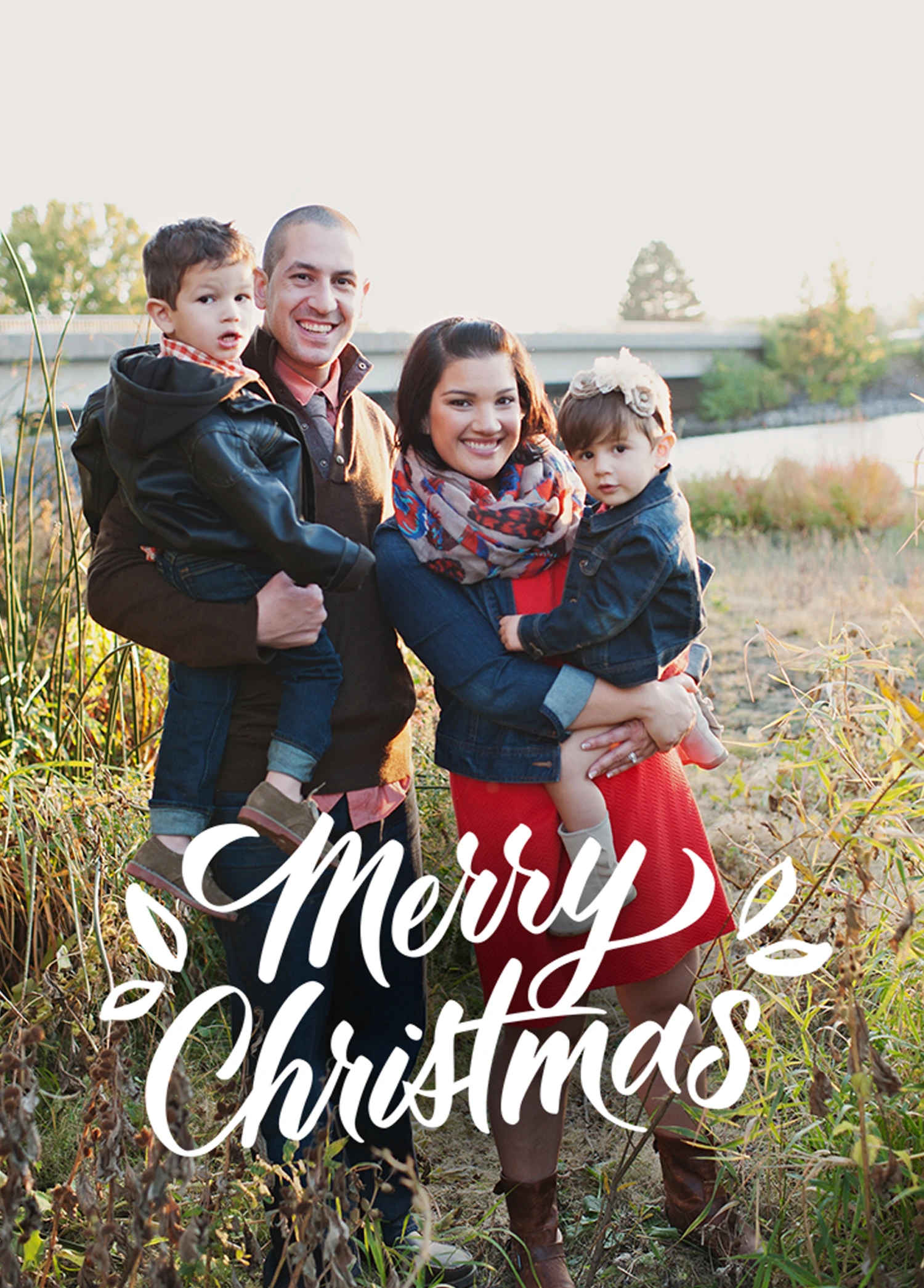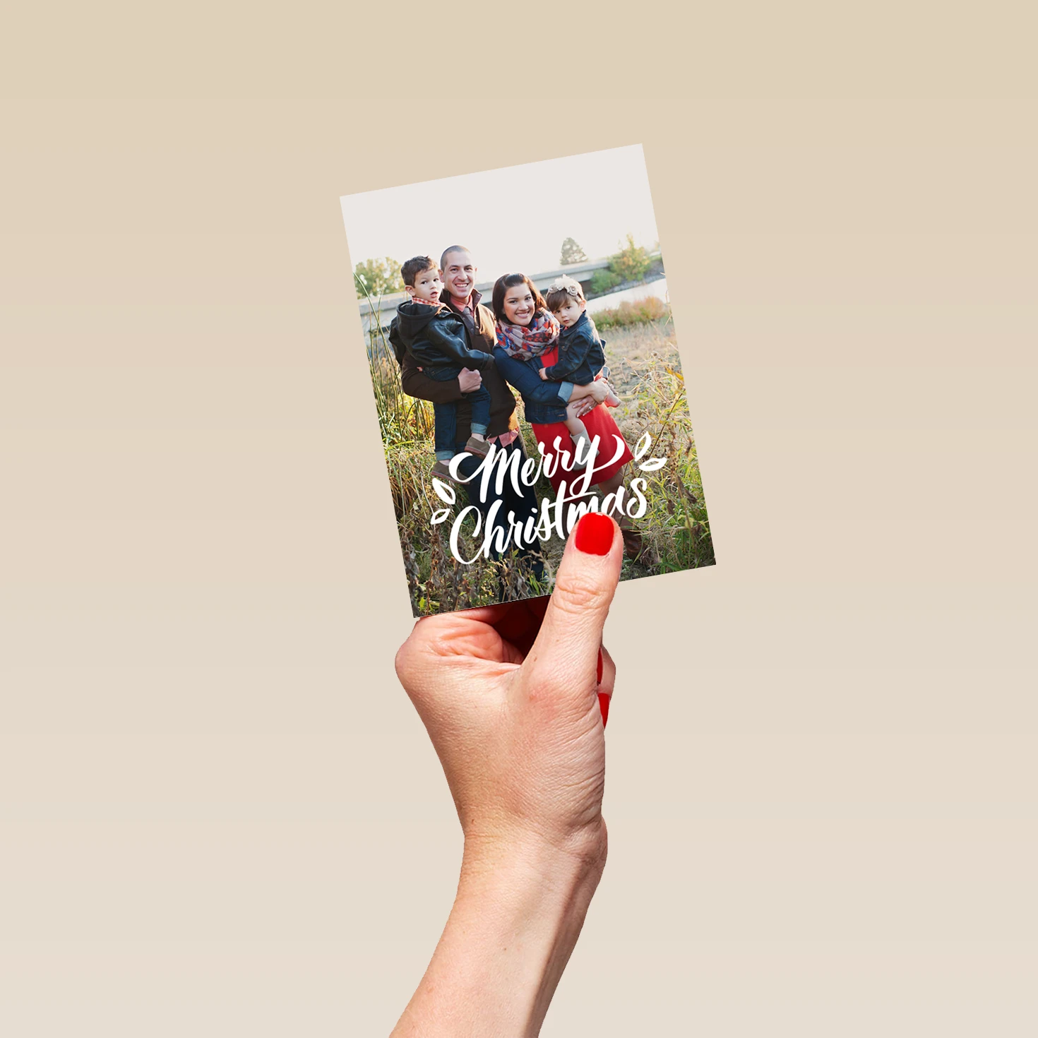 Printed on premium-quality board, this card features background space to upload a photo of your favourite people, and the message ‘Merry Christmas’.