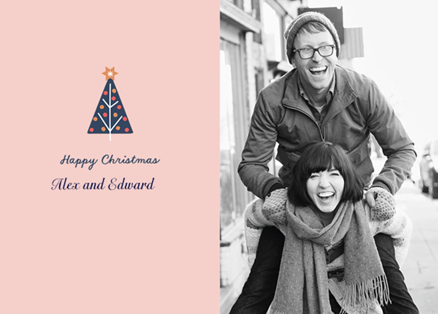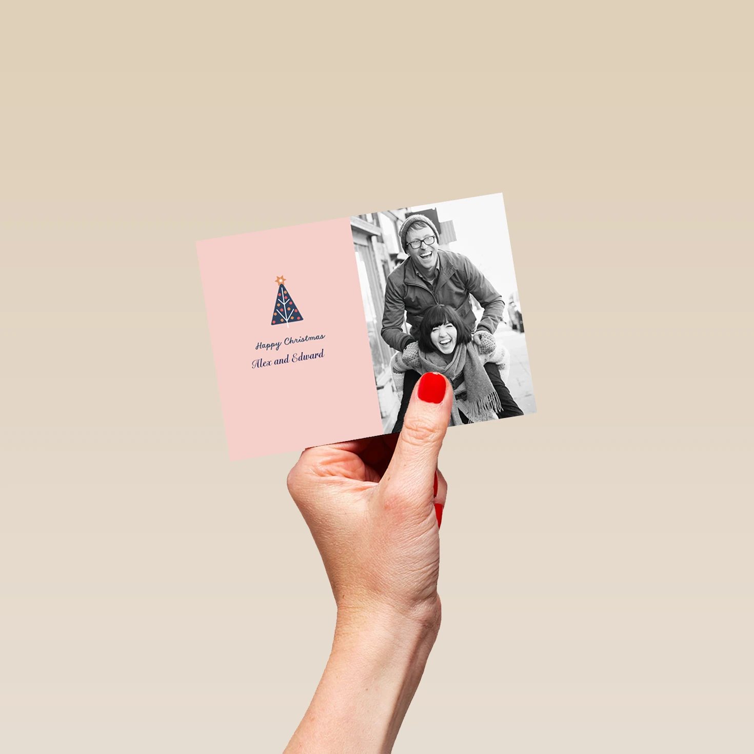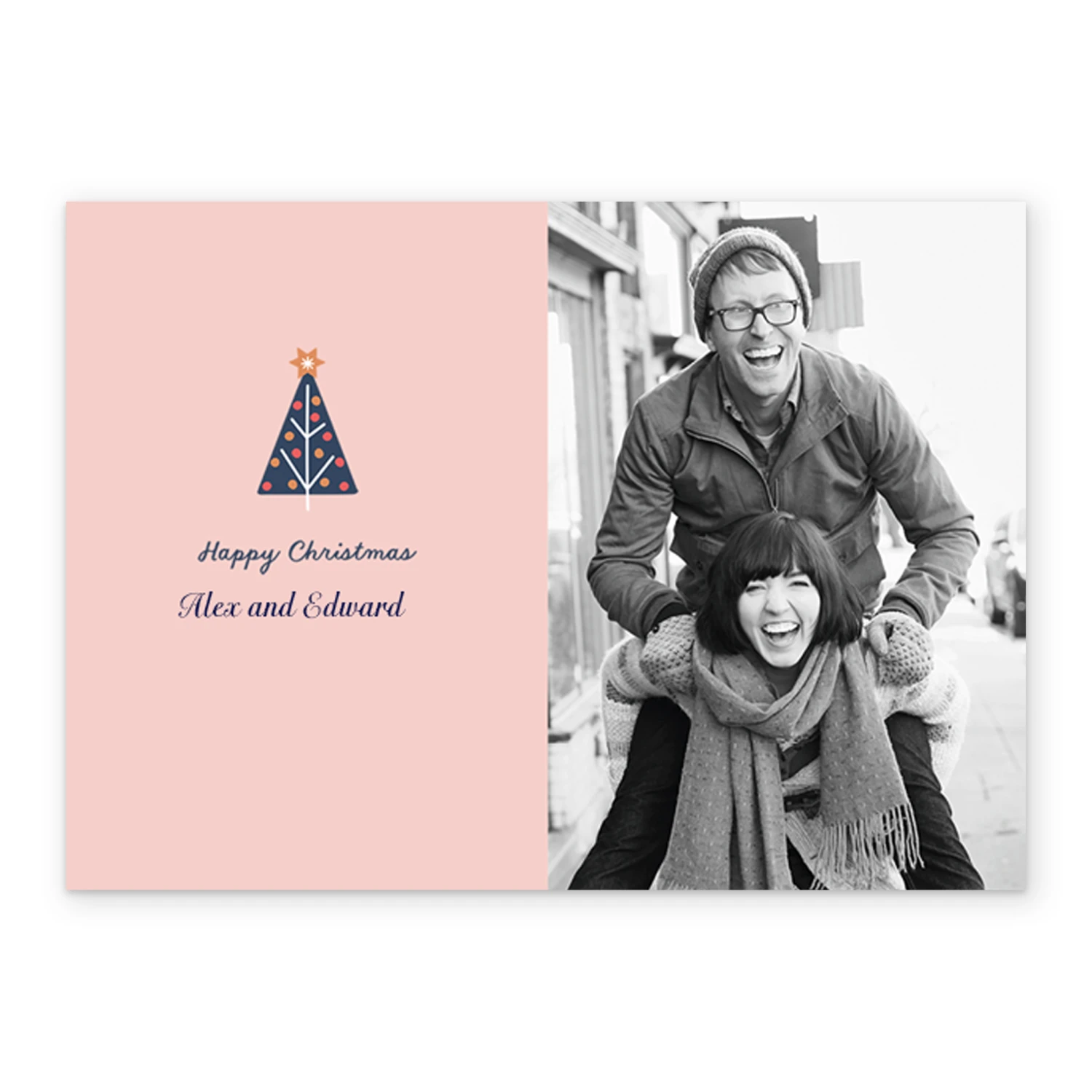 Show them you care with a personalised festive happy photo tree card from Hallmark. Our Christmas cards are printed on premium quality, FSC®-certified card & delivered nationwide. This card is available as standard 16.7cm by 12cm and large 21.6cm by 15.5cm.
