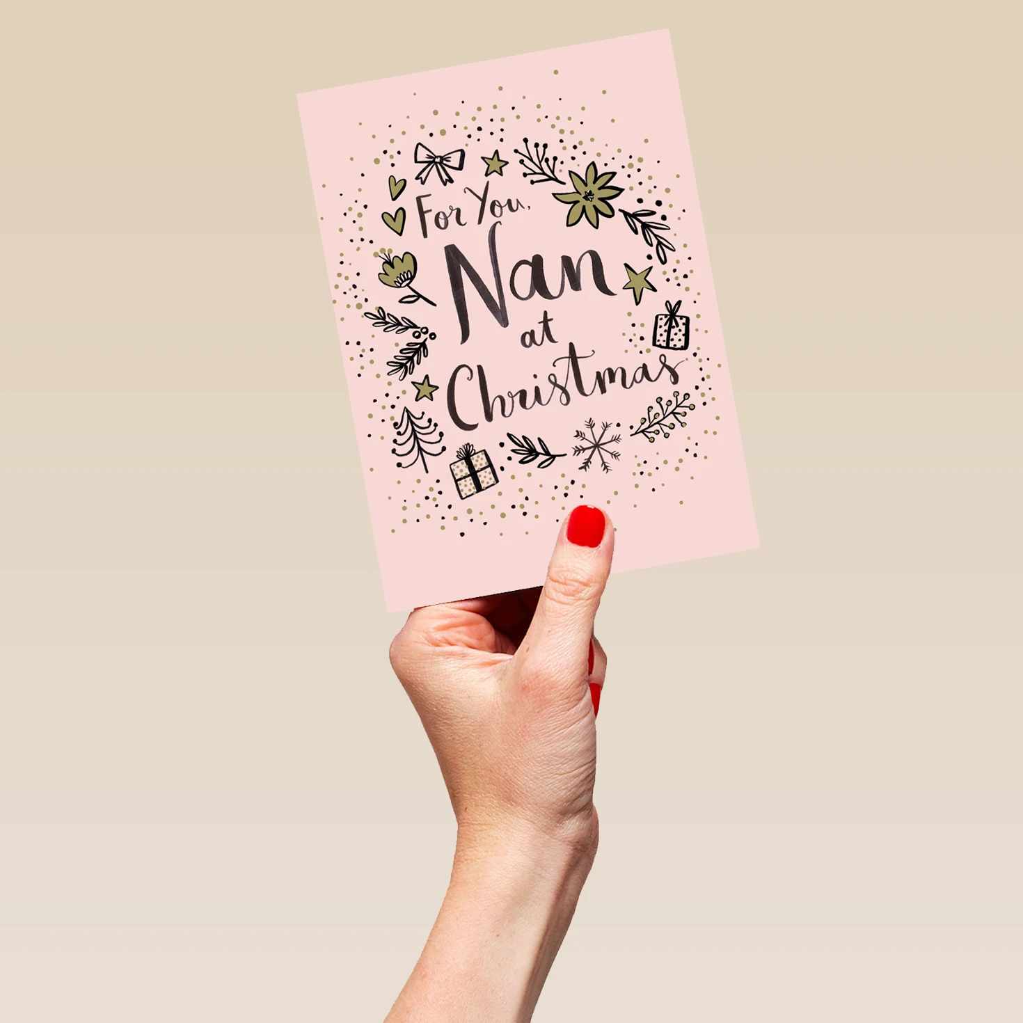 Show them you care with a personalised festive nan card from Hallmark. Our Christmas cards are printed on premium quality, FSC®-certified card & delivered nationwide. This card is available as standard 12cm by 16.7cm and large 15.5cm by 21.6cm.
