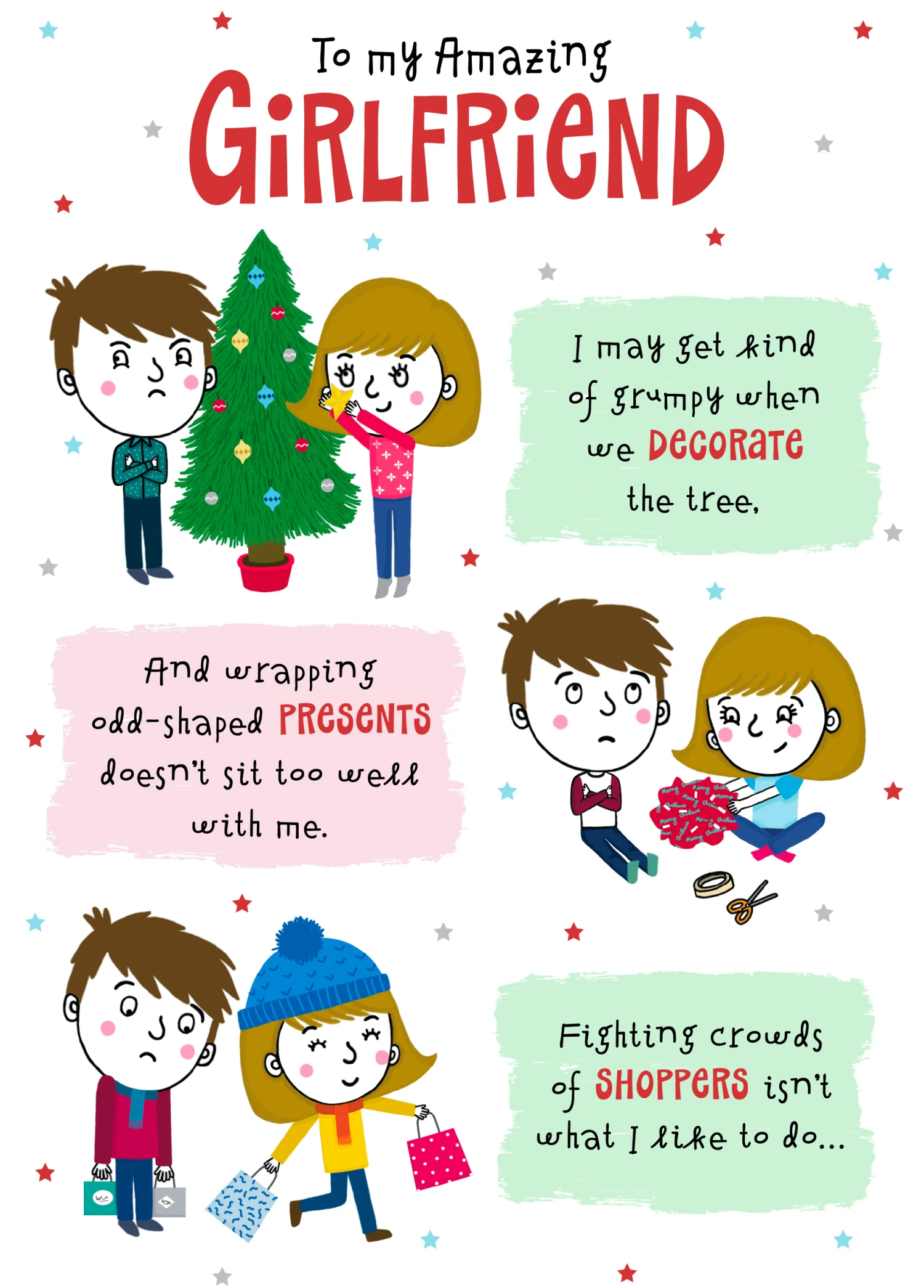 Show them you care with a personalised for an amazing girlfriend Christmas card from Hallmark. Our Christmas cards are printed on premium quality, FSC®-certified card & delivered nationwide. This card is available as standard 12cm by 16.7cm and large 15.5cm by 21.6cm.