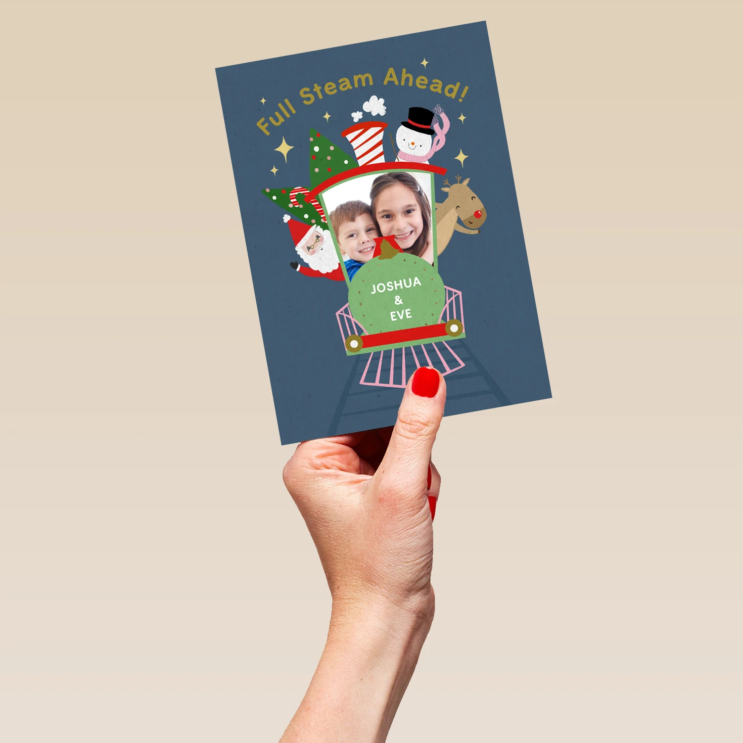 Pod Personalised Full Steam Ahead Photo Christmas Card