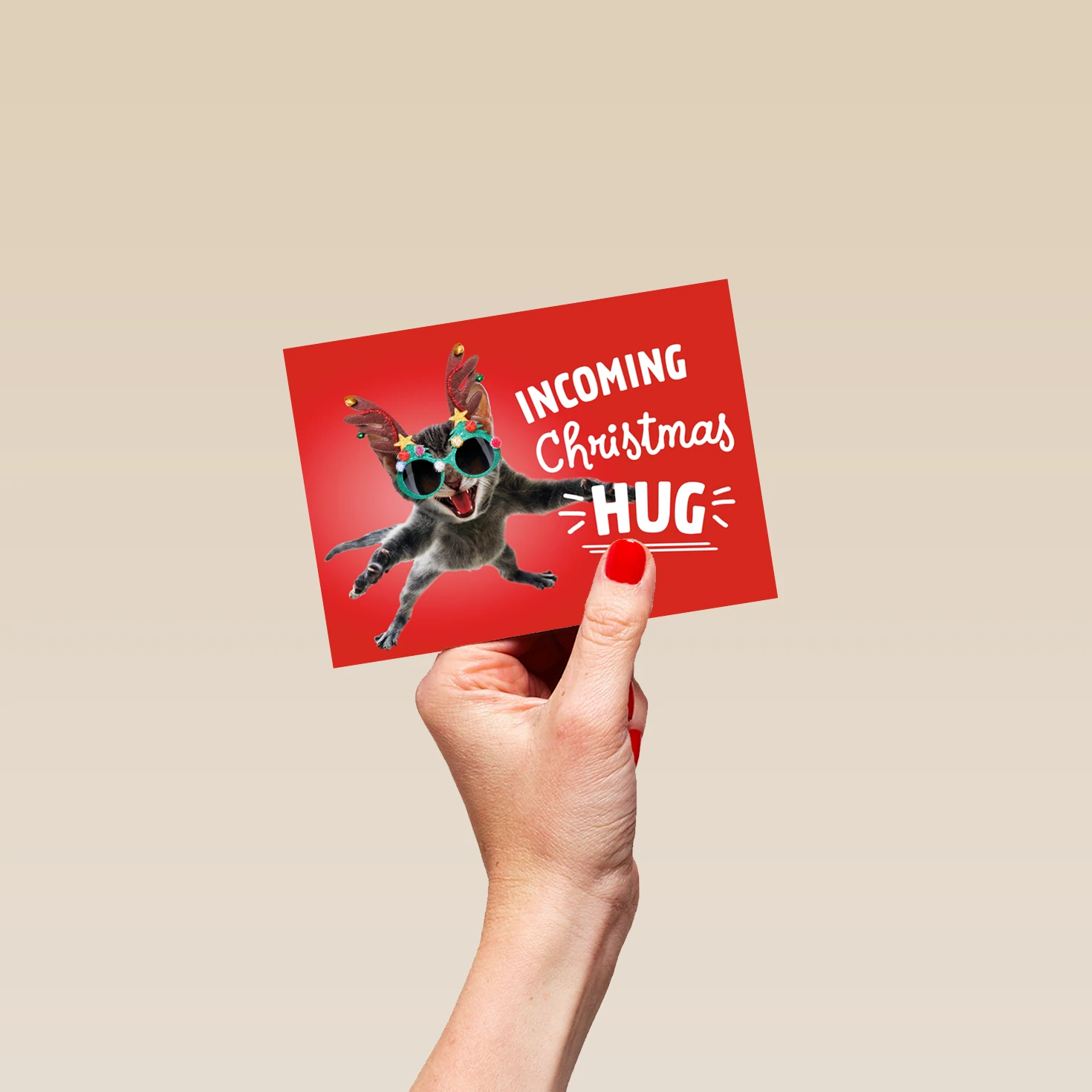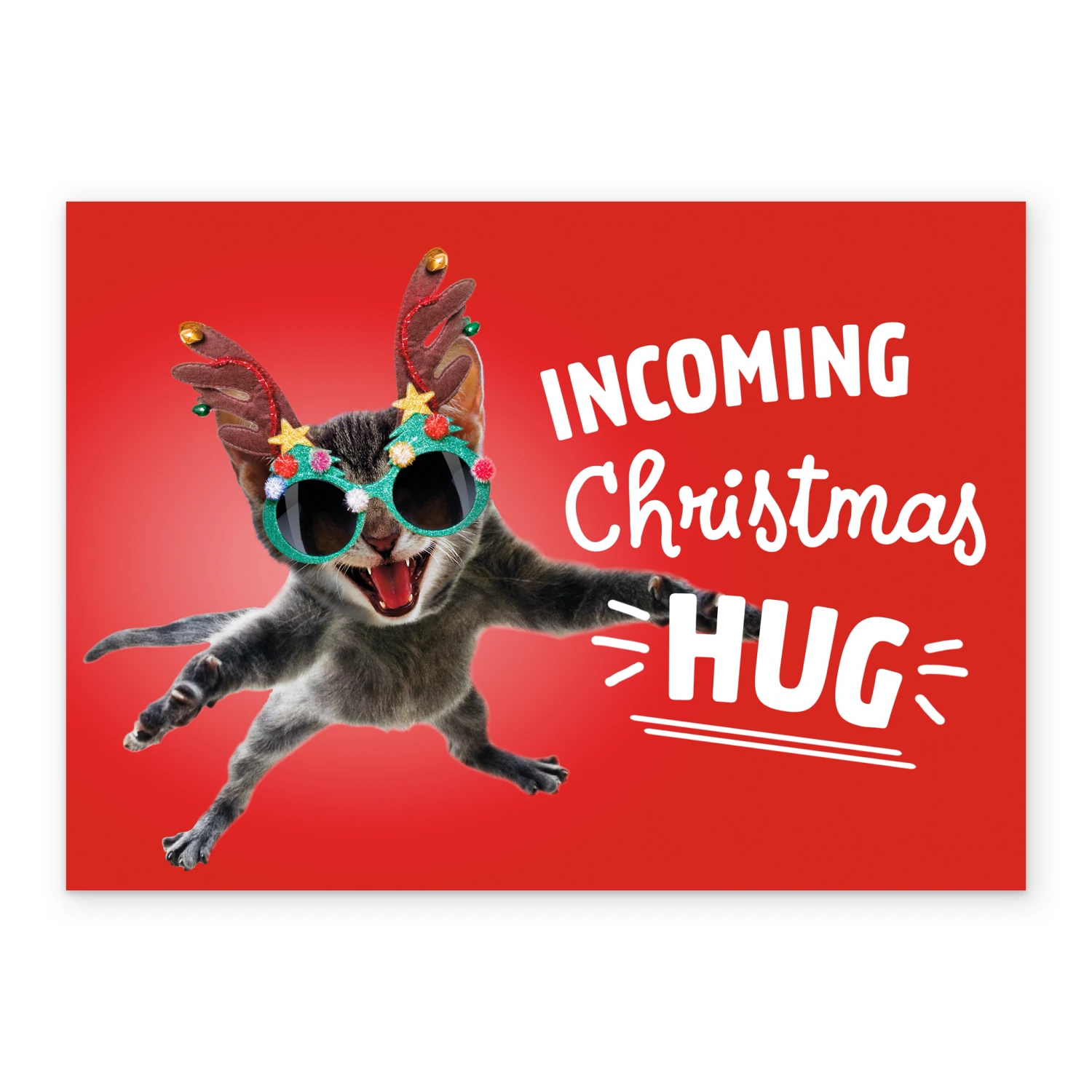Show them you care with a personalised funny cat hug Christmas card from Hallmark. Our greetings cards are printed on premium quality, FSC®-certified card & delivered nationwide. This card is available as standard 16.7cm by 12cm and large 21.6cm by 15.5cm.