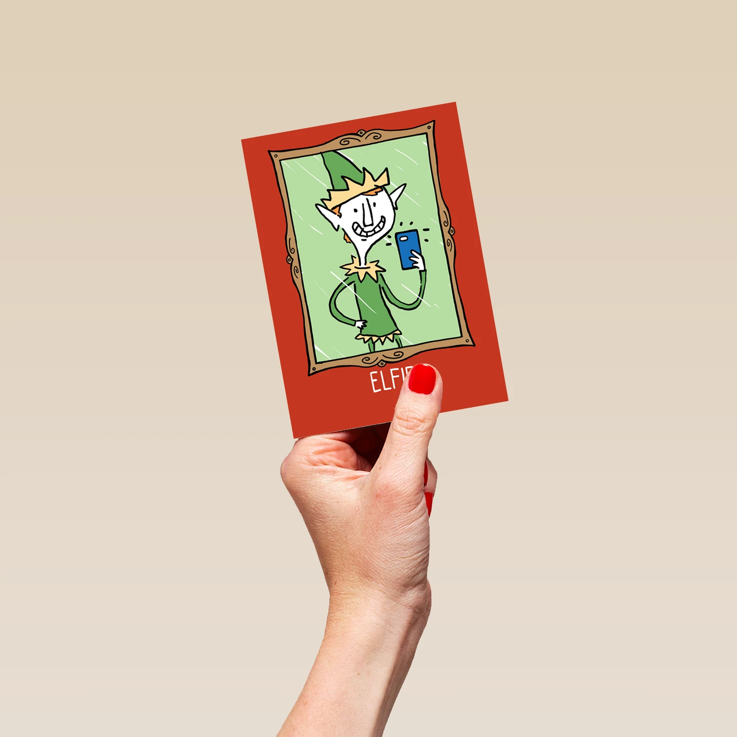 Show them you care with a personalised funny Christmas Shoebox cartoon elfie card from Hallmark. Our greetings cards are printed on premium quality, FSC®-certified card & delivered nationwide. This card is available as standard 12cm by 16.7cm and large 15.5cm by 21.6cm.