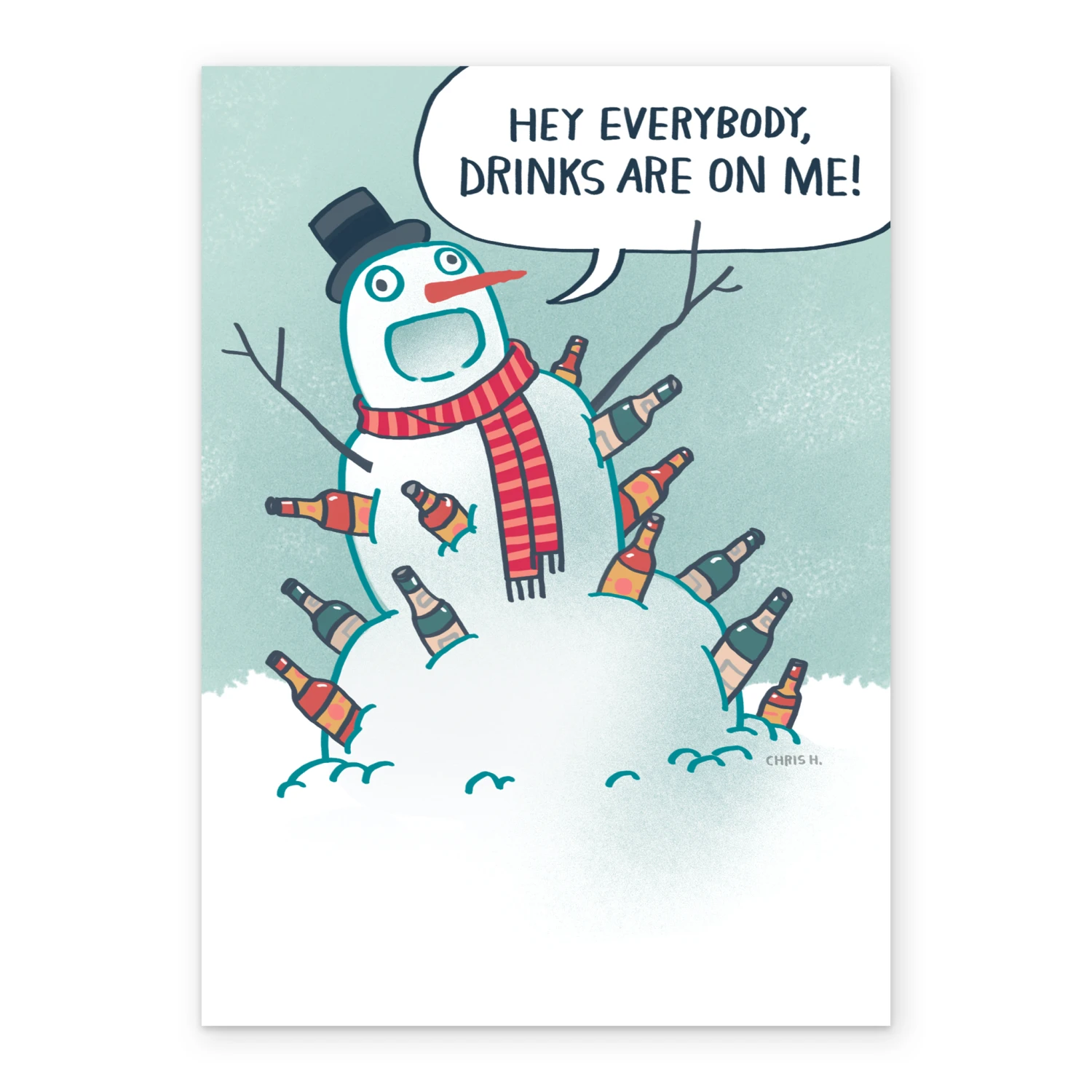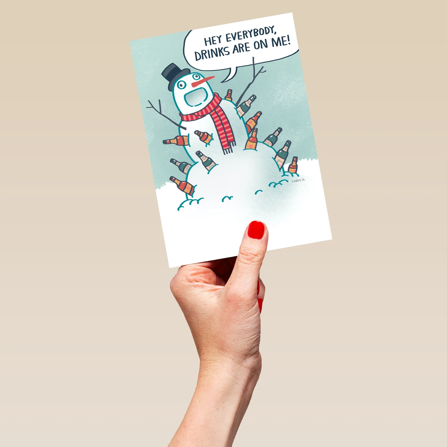 Pod Personalised Funny Christmas Shoebox Cartoon Snowman Drinks Card