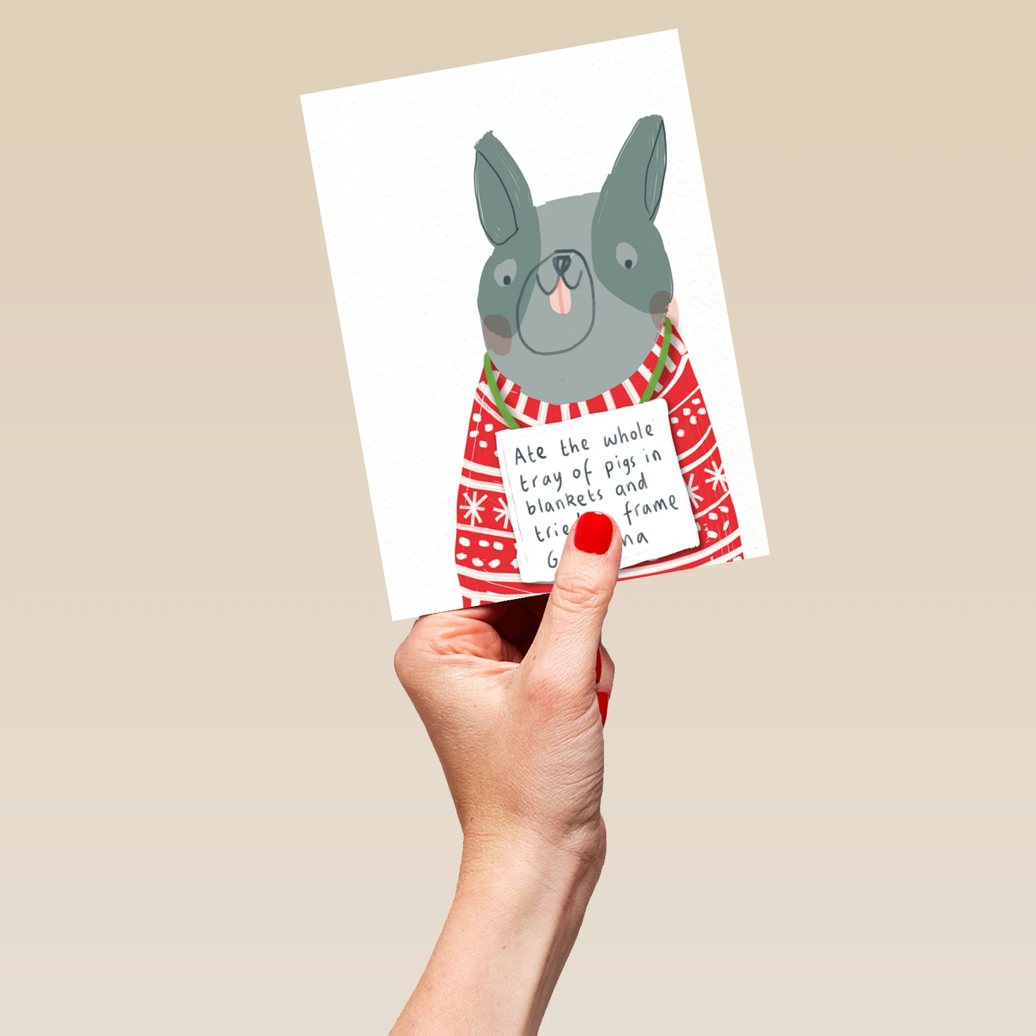 Show them you care with a personalised, funny dog shaming Christmas card.