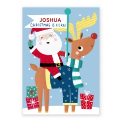 Printed on premium-quality board, this card features funny dogs with a red and green background, with the message ‘Before/ After Christmas’, and space to personalise a name.