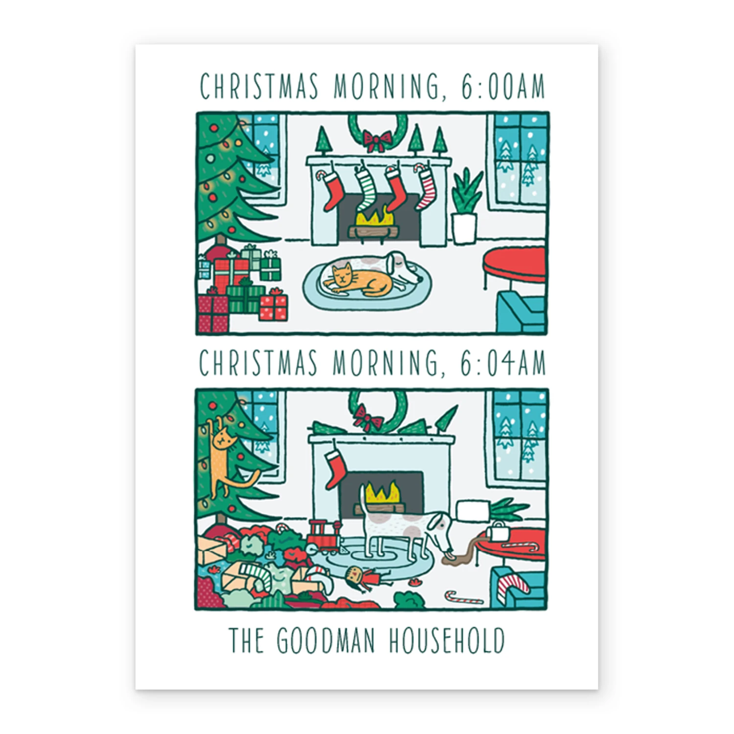 Show them you care with a personalised funny editable cartoon Christmas morning card from Hallmark. Our greetings cards are printed on premium quality, FSC®-certified card & delivered nationwide. This card is available as standard 12cm by 16.7cm and large 15.5cm by 21.6cm.
