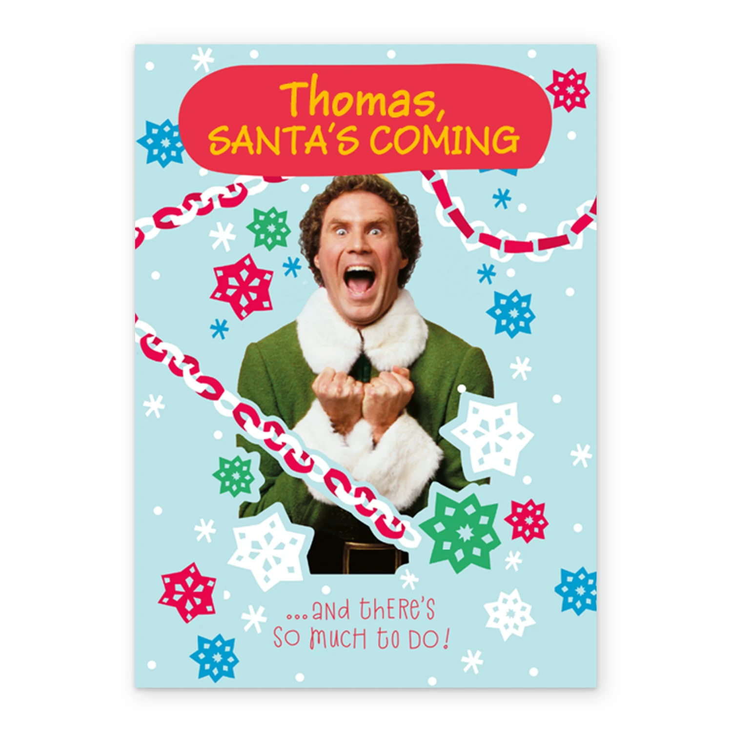 Pod Personalised Funny Elf Santa’s Coming Christmas Card