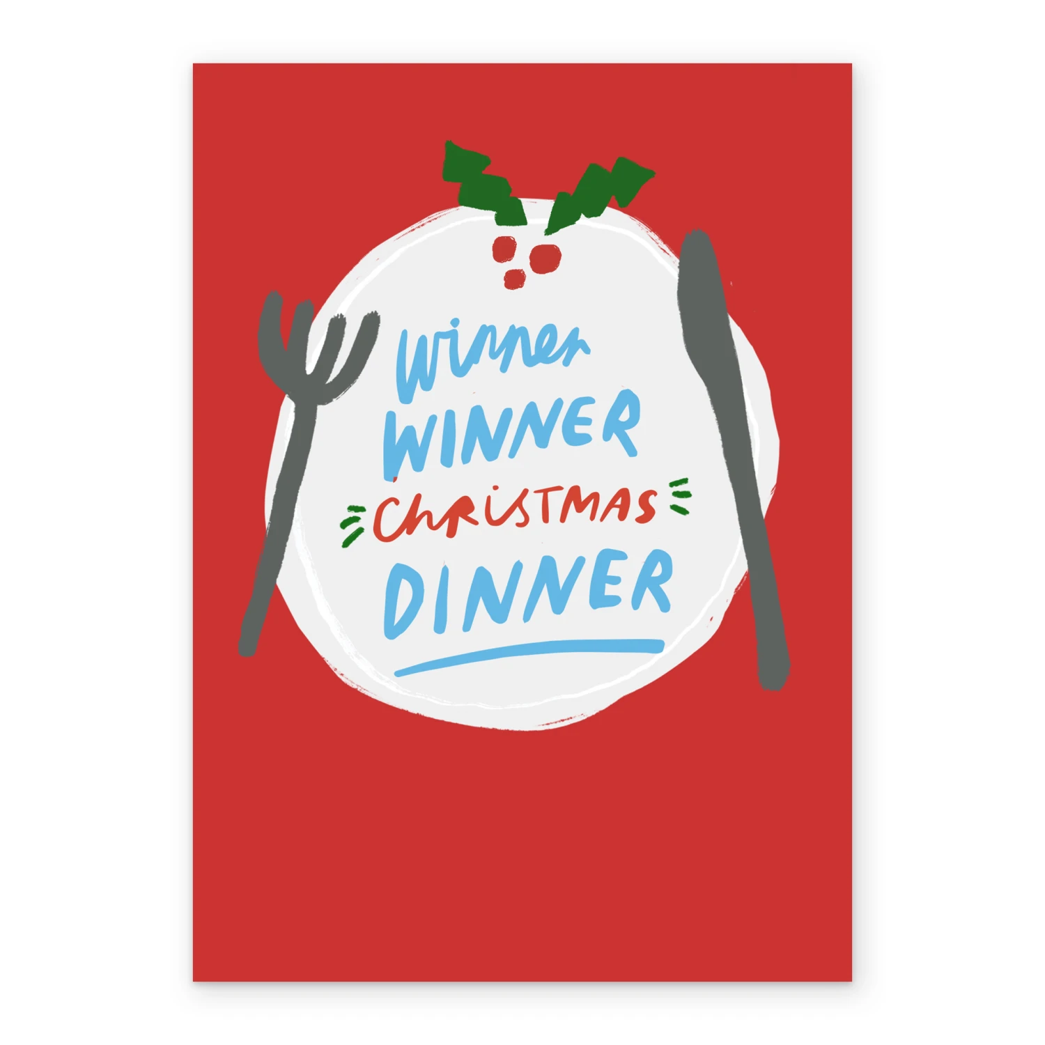 Printed on premium-quality board, this card features a Christmas dinner with the message ‘Winner, Winner, Christmas Dinner’.