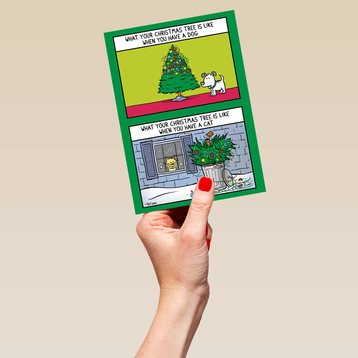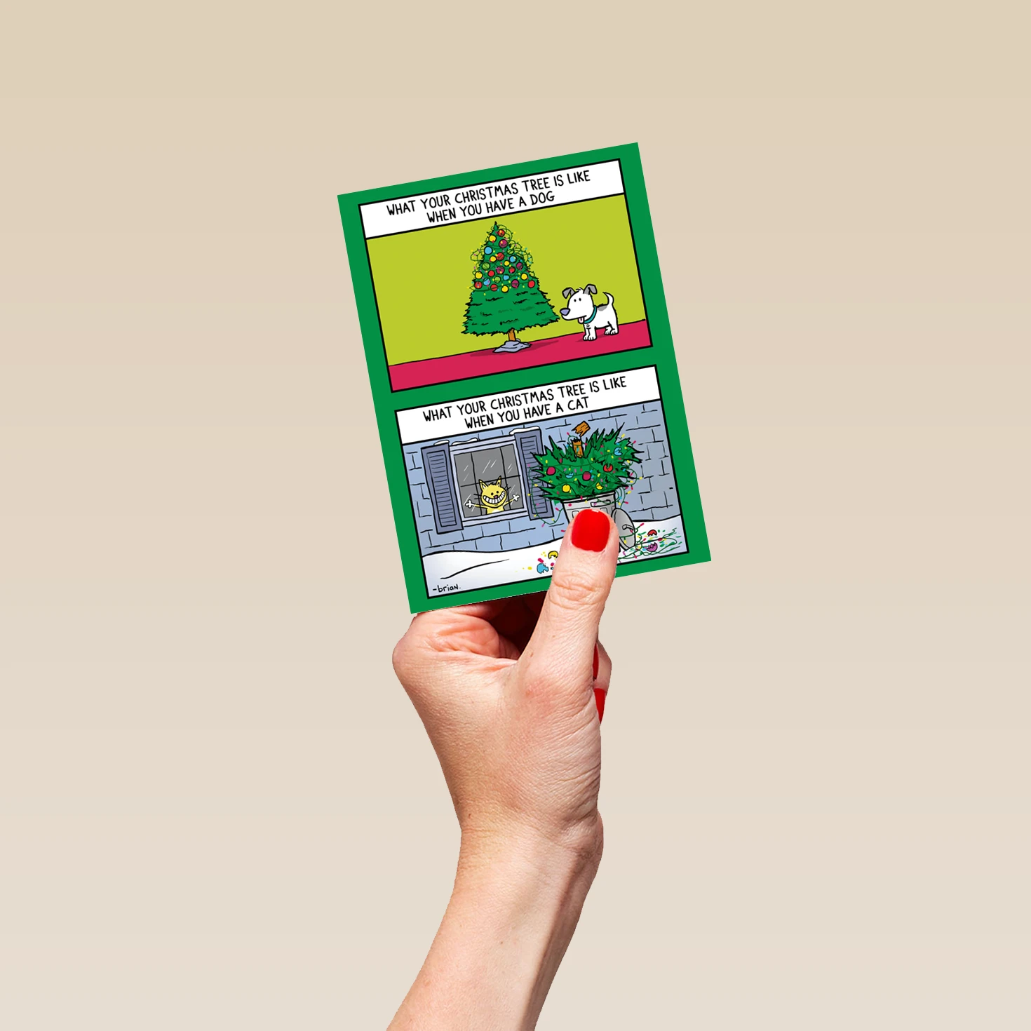 Show them you care with a personalised funny Christmas Shoebox cartoon tree card from Hallmark. Our greetings cards are printed on premium quality, FSC®-certified card & delivered nationwide. This card is available as standard 12cm by 16.7cm and large 15.5cm by 21.6cm.