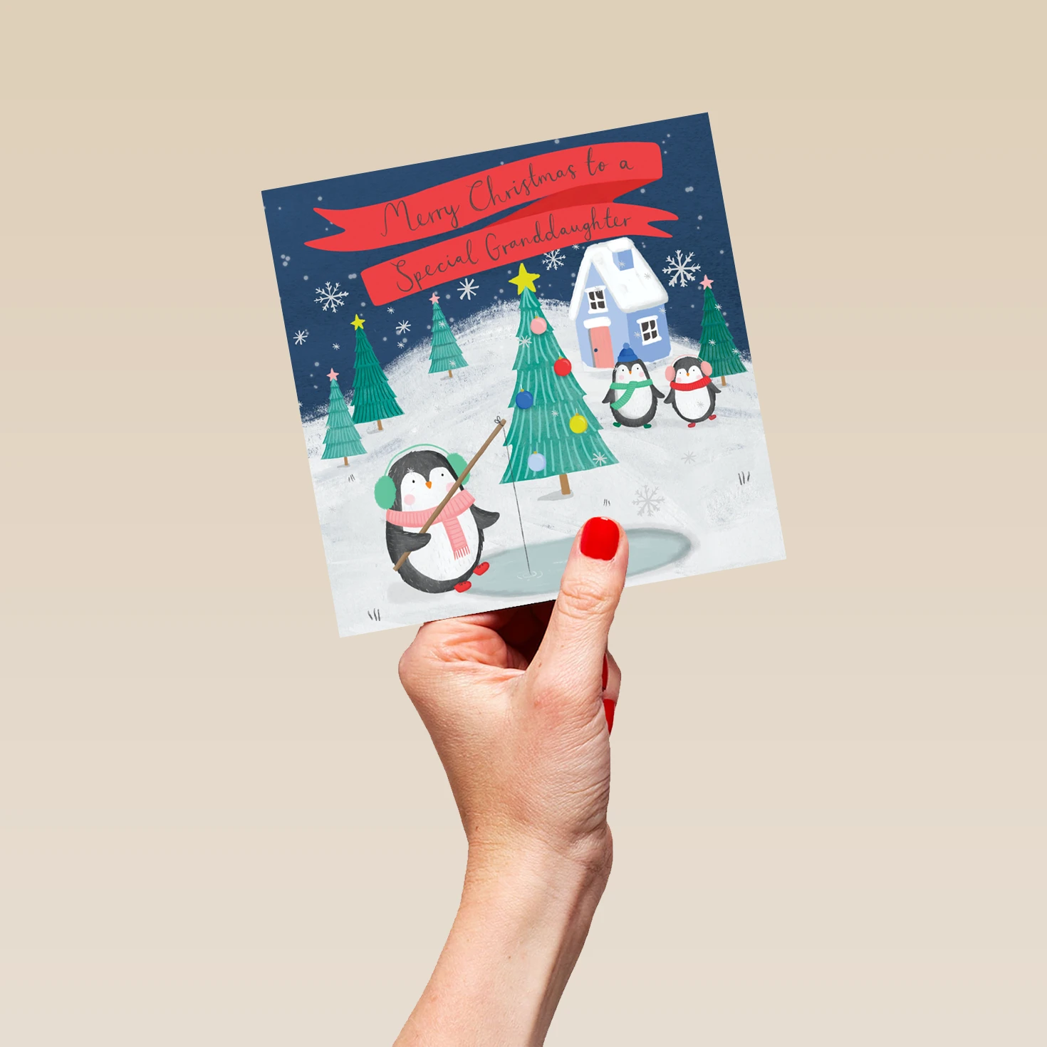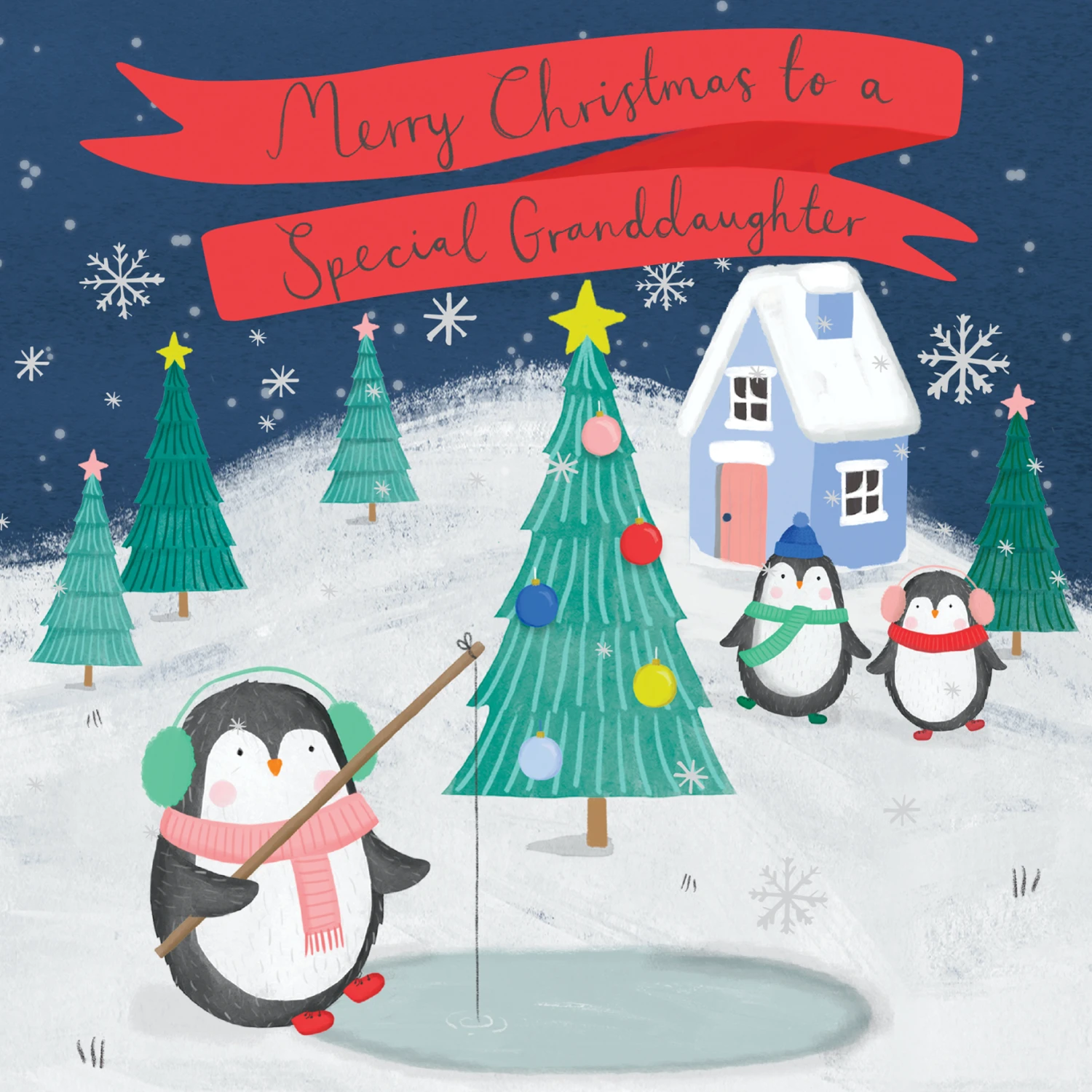 Pod Personalised Granddaughter Cute Penguins Christmas Card