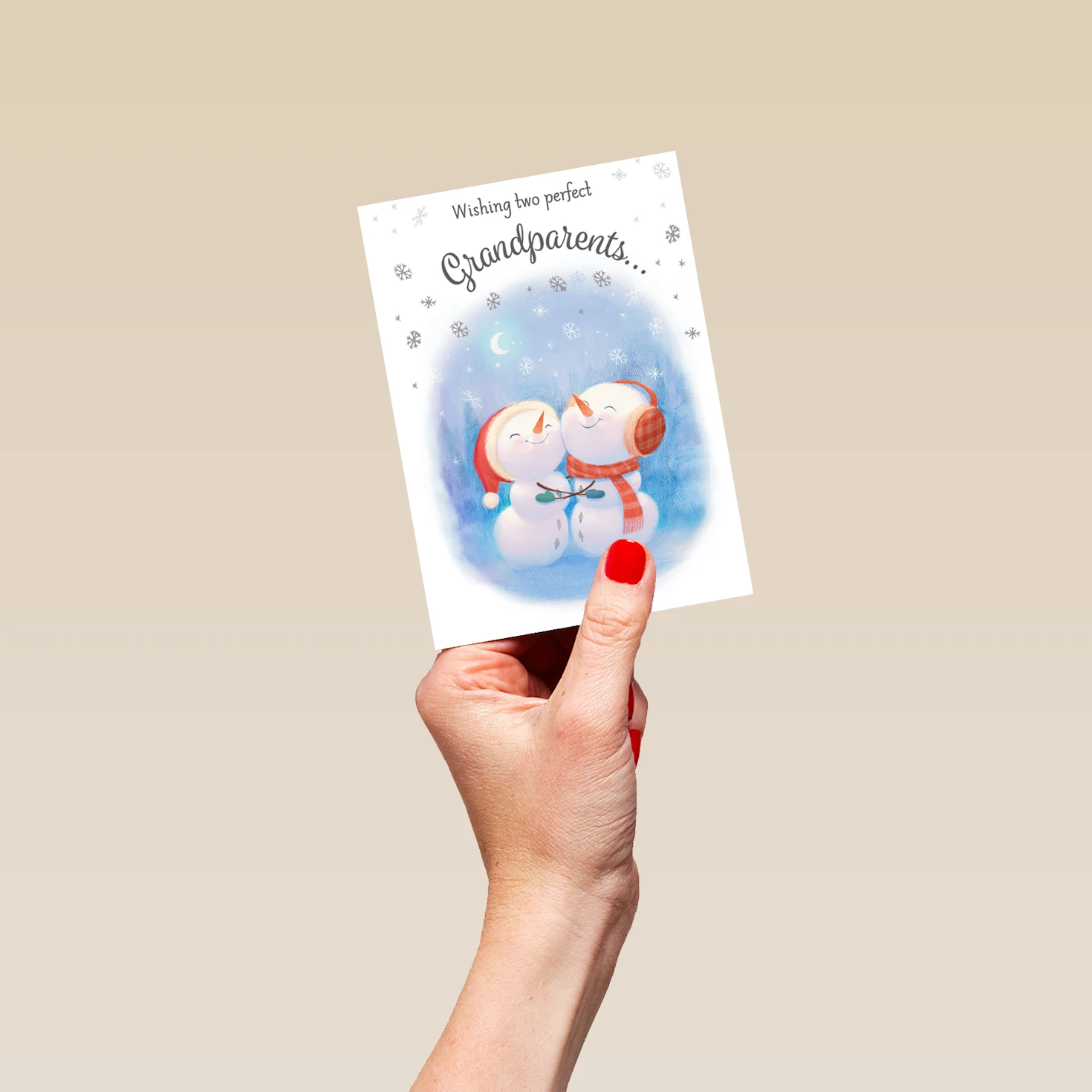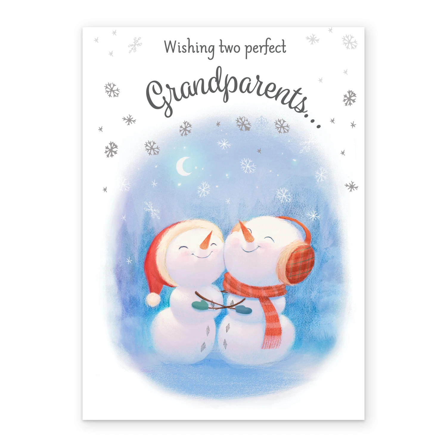 Show them you care with a personalised grandparents cute snowmen card from Hallmark. Our Christmas cards are printed on premium quality, FSC®-certified card & delivered nationwide. This card is available as standard 12cm by 16.7cm and large 15.5cm by 21.6cm.