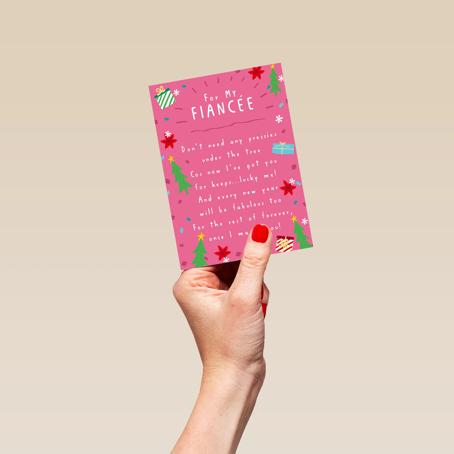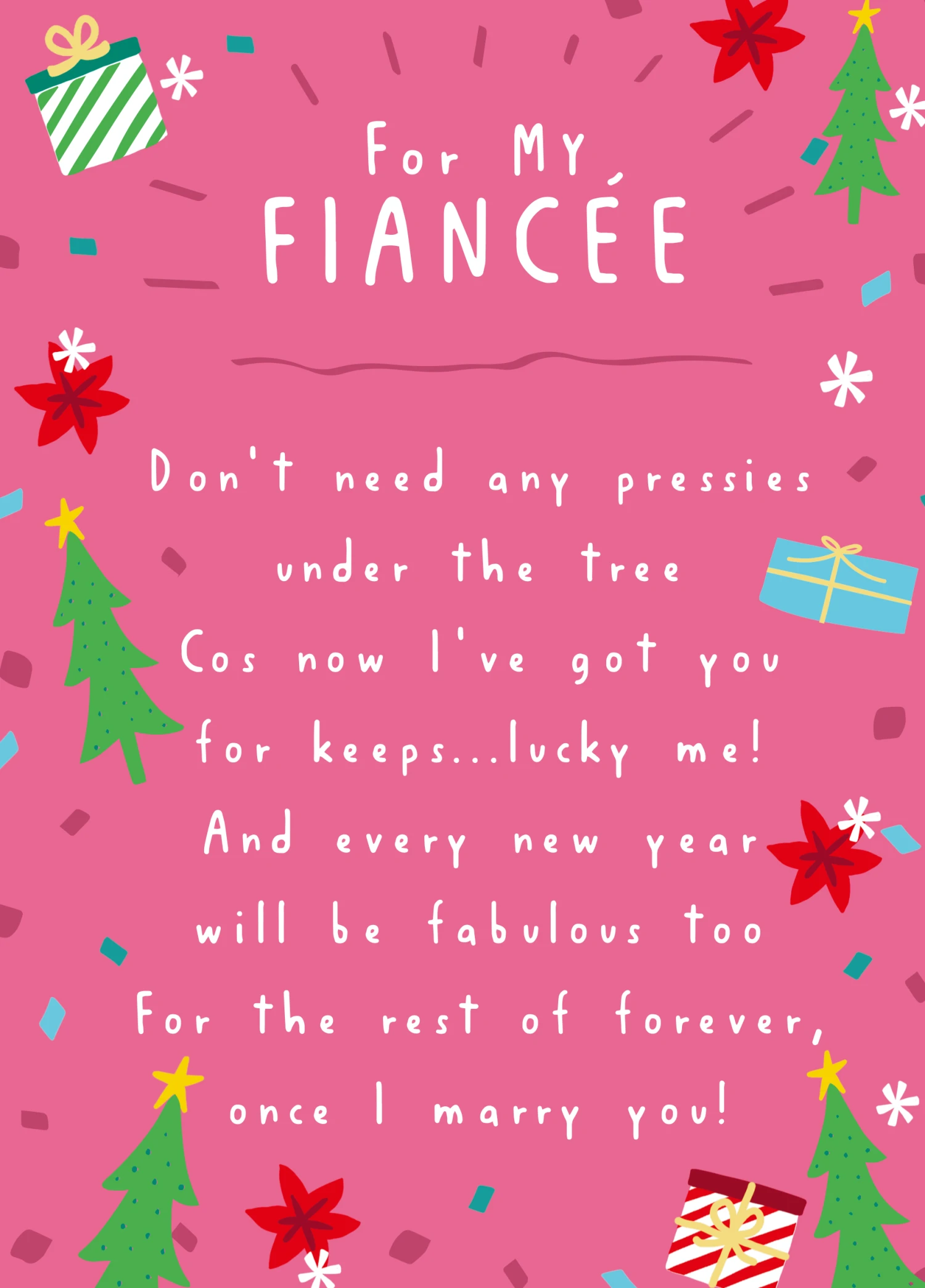 Send a card that says your feelings perfectly to your wonderful Fiancée, with this heartfelt personalisable Christmas card.