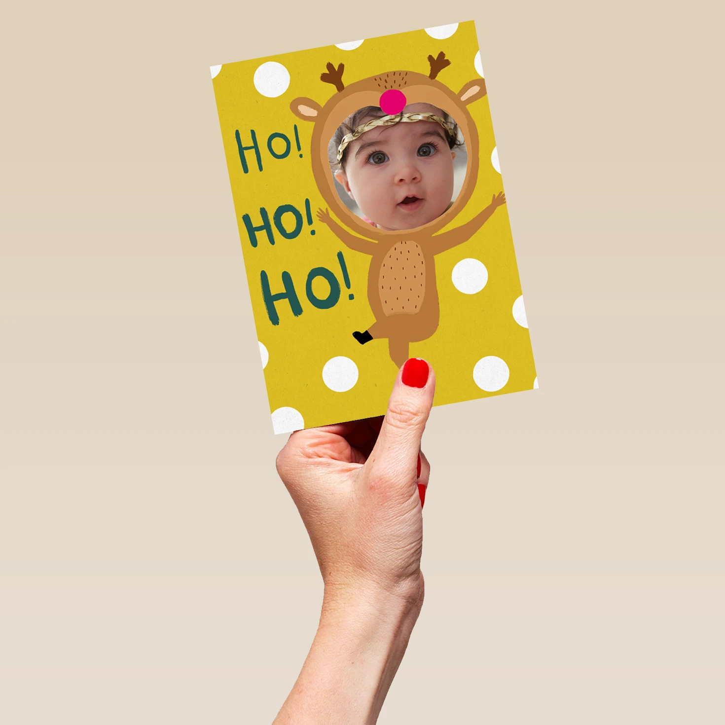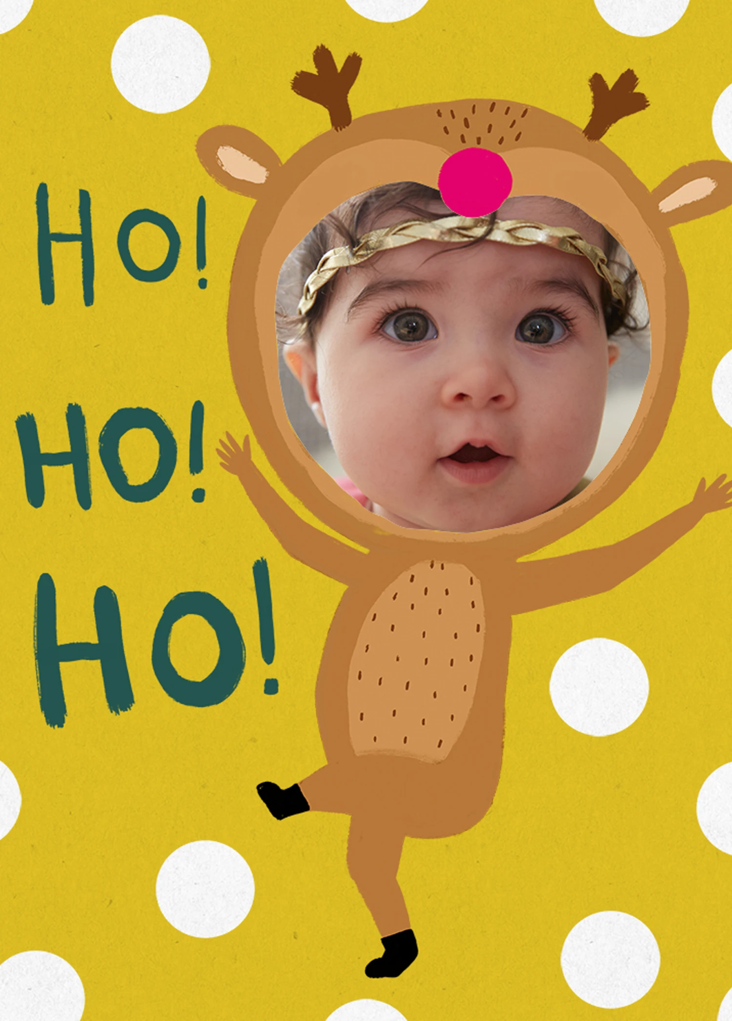 Pod Personalised Ho Ho Ho Reindeer Photo Christmas Card