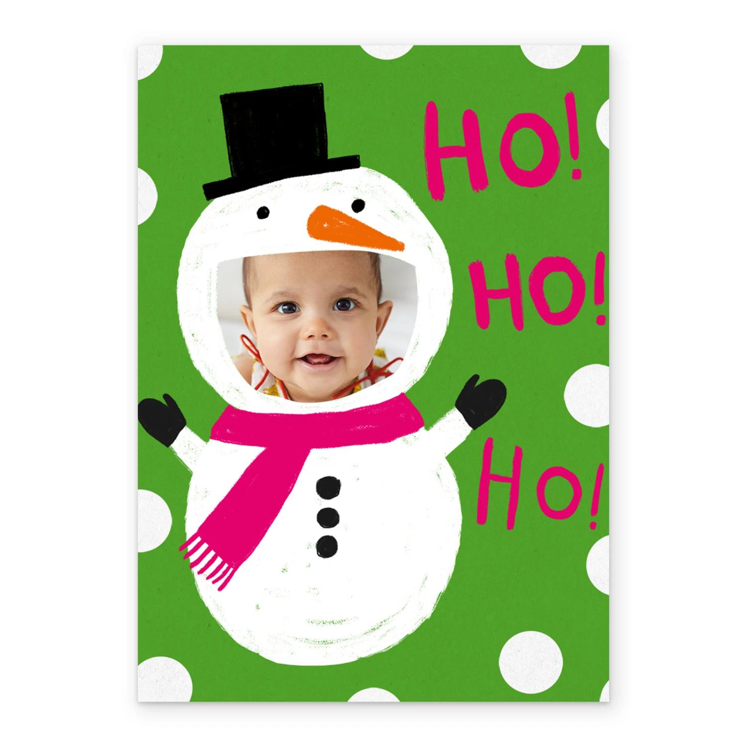 Show them you care with a personalised ho ho ho snowman photo Christmas card from Hallmark. Our greetings cards are printed on premium quality, FSC®-certified card & delivered nationwide. This card is available as standard 12cm by 16.7cm and large 15.5cm by 21.6cm.