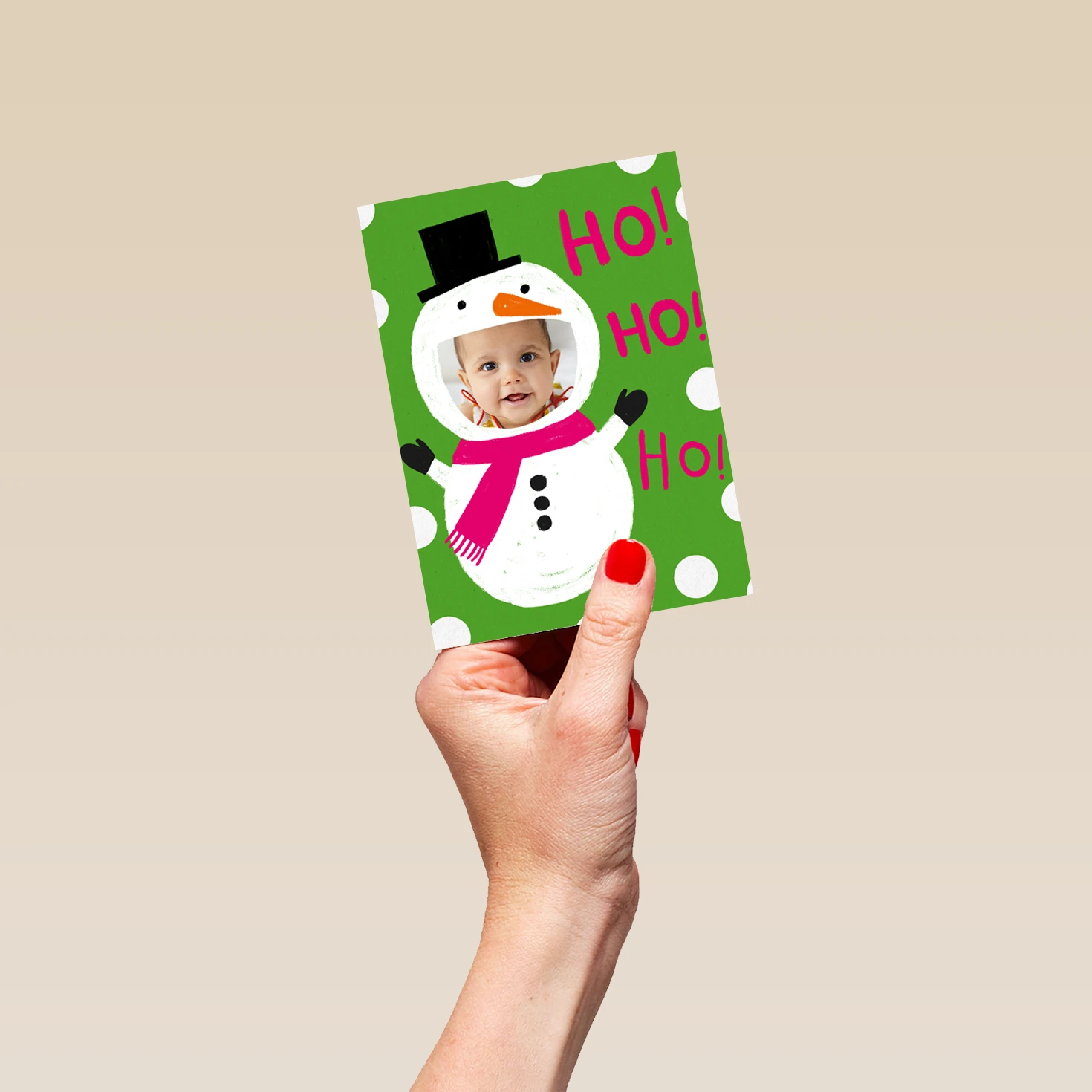 Pod Personalised Ho Ho Ho Snowman Photo Christmas Card