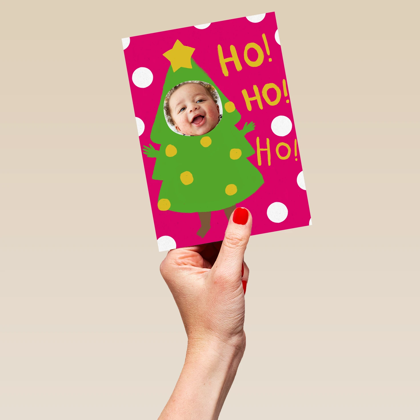 Pod Personalised Ho Ho Ho Tree Photo Christmas Card