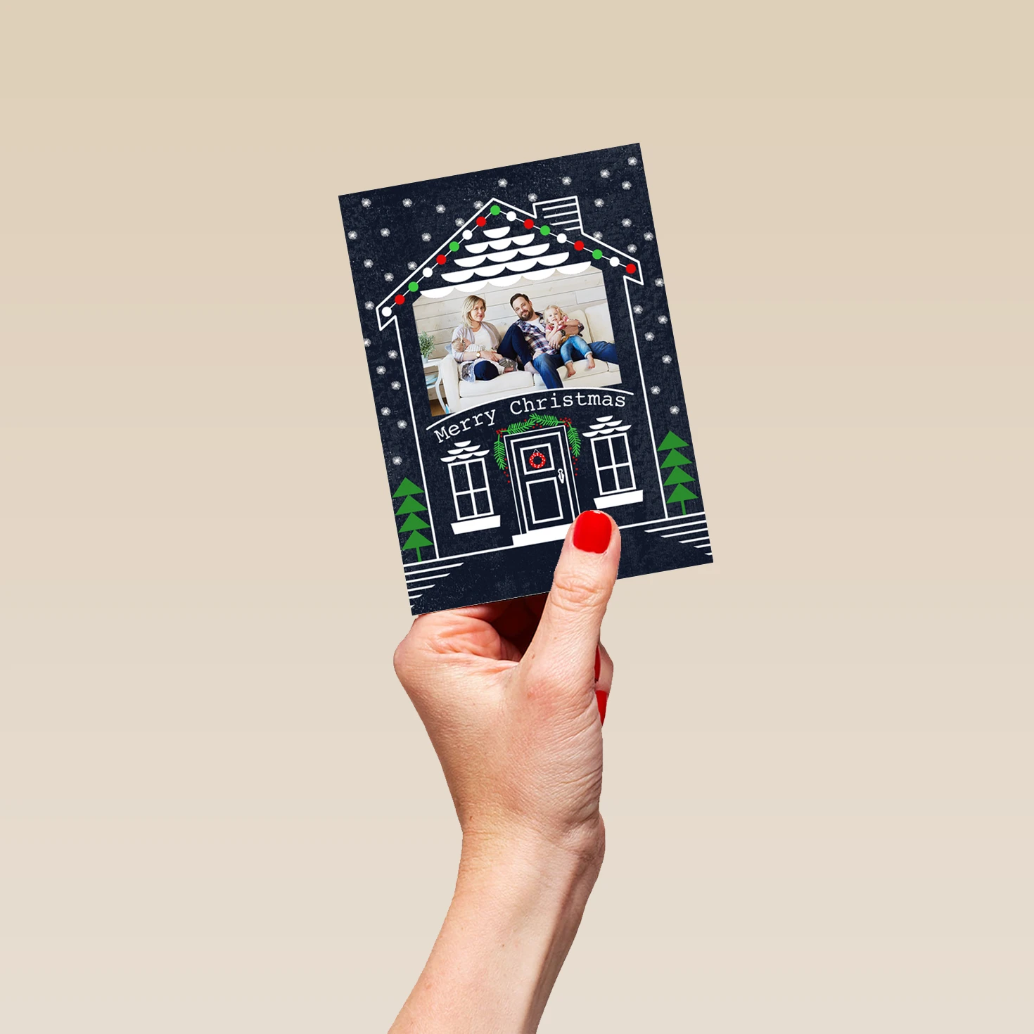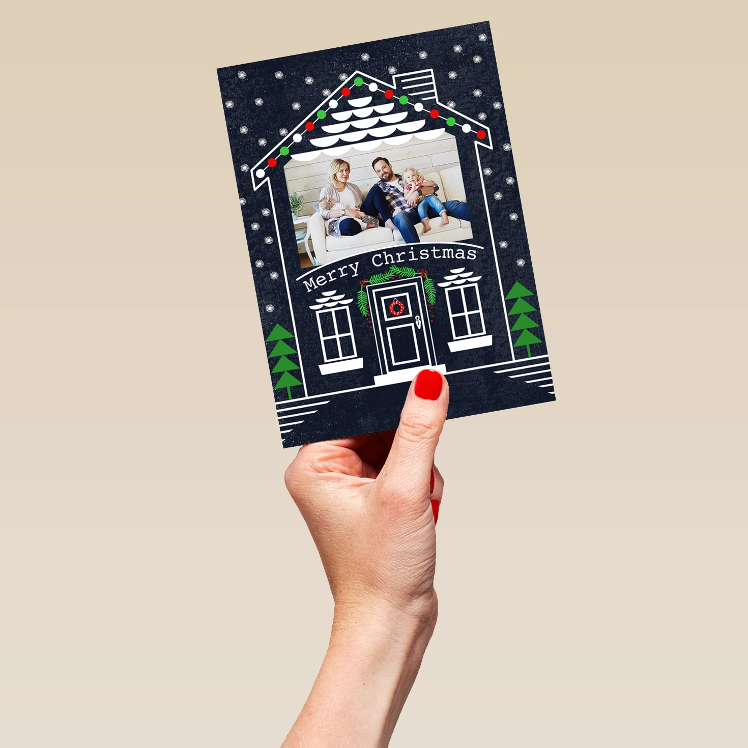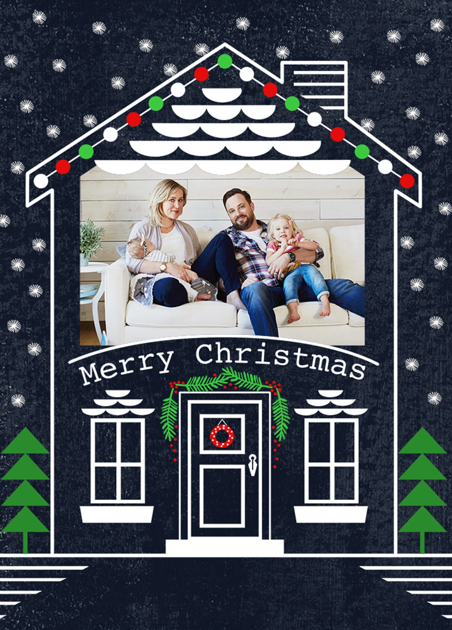 Show them you care with a personalised house family photo card from Hallmark. Our Christmas cards are printed on premium quality, FSC®-certified card & delivered nationwide. This card is available as standard 12cm by 16.7cm and large 15.5cm by 21.6cm.