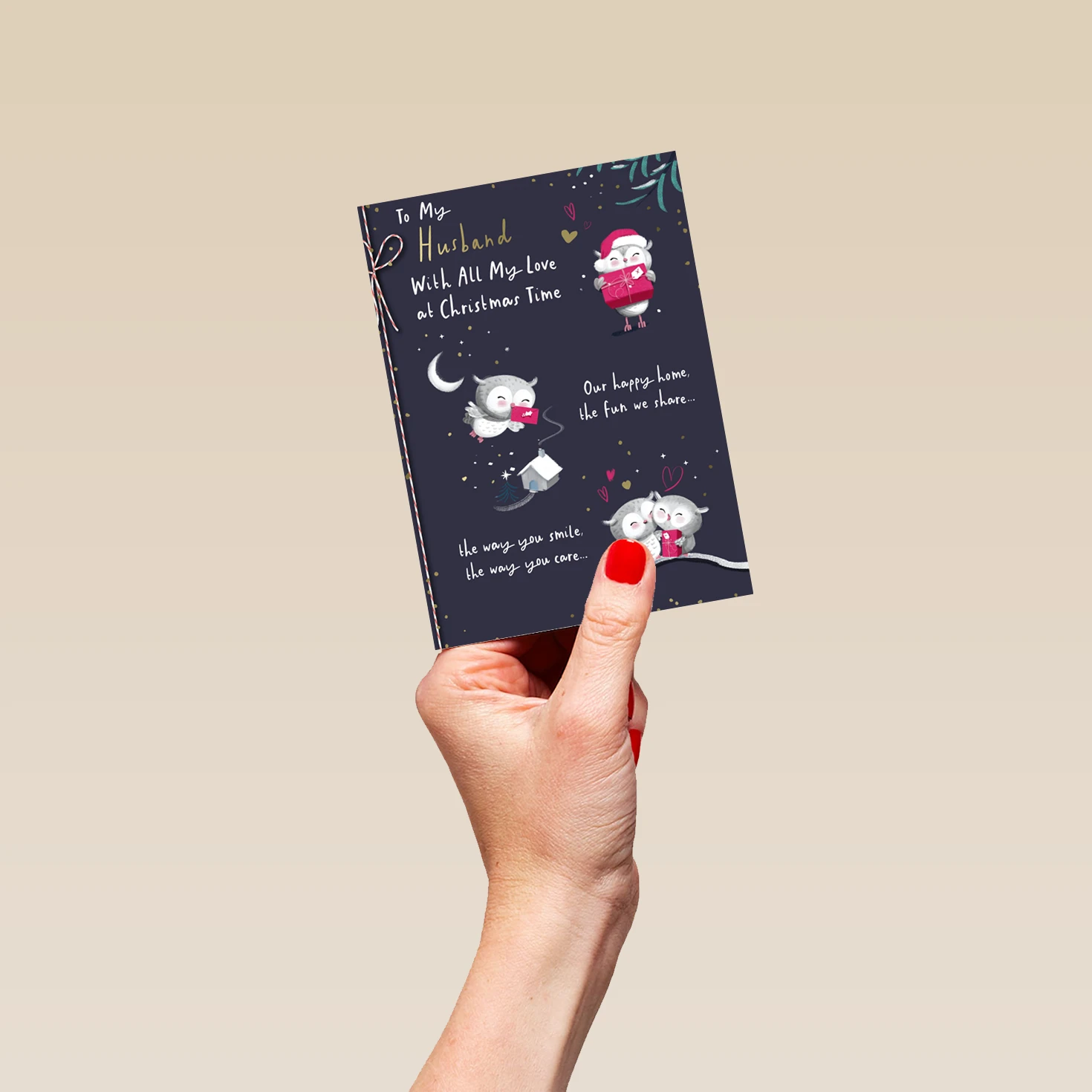 Pod Personalised Husband Cute Owls Rebus Verse Christmas Card