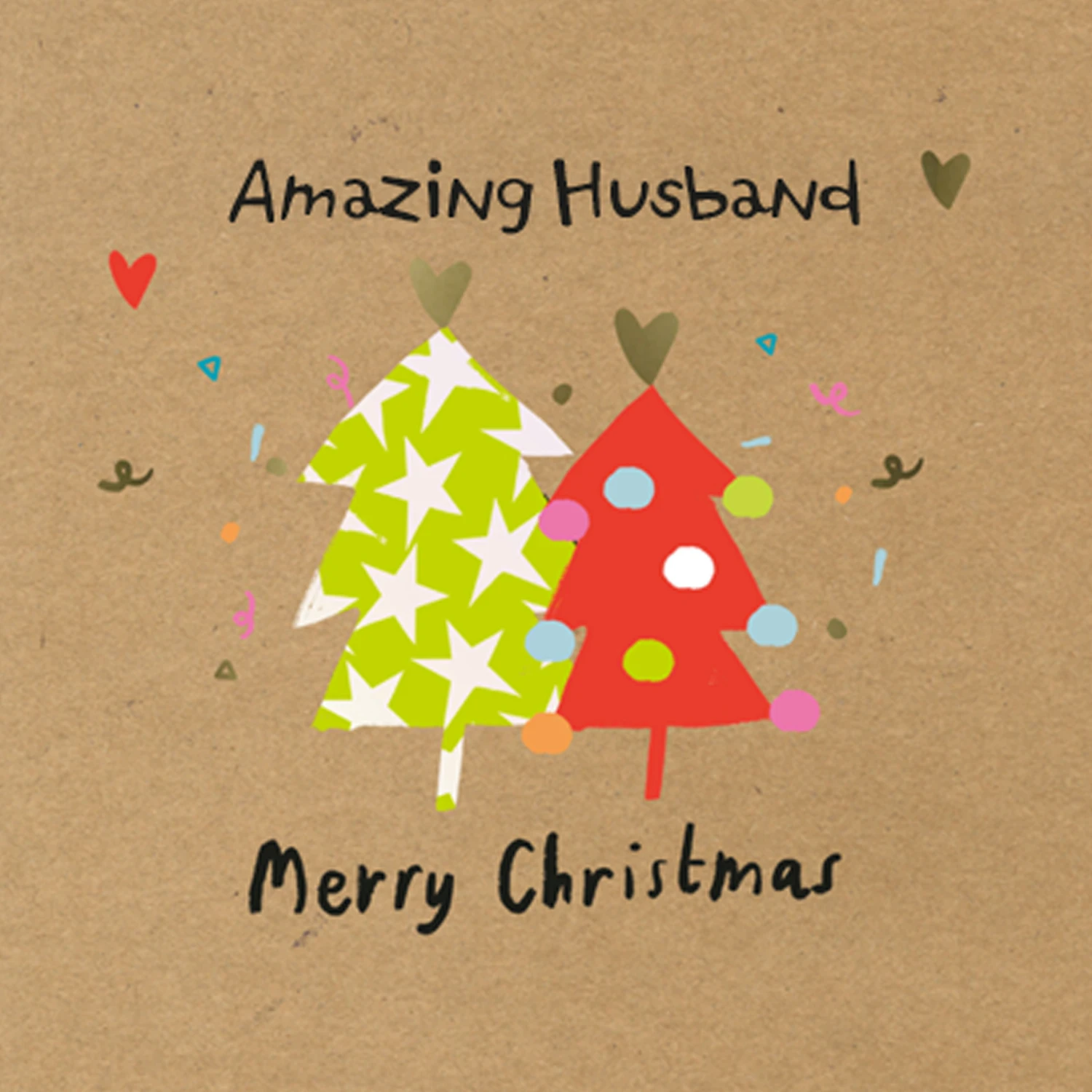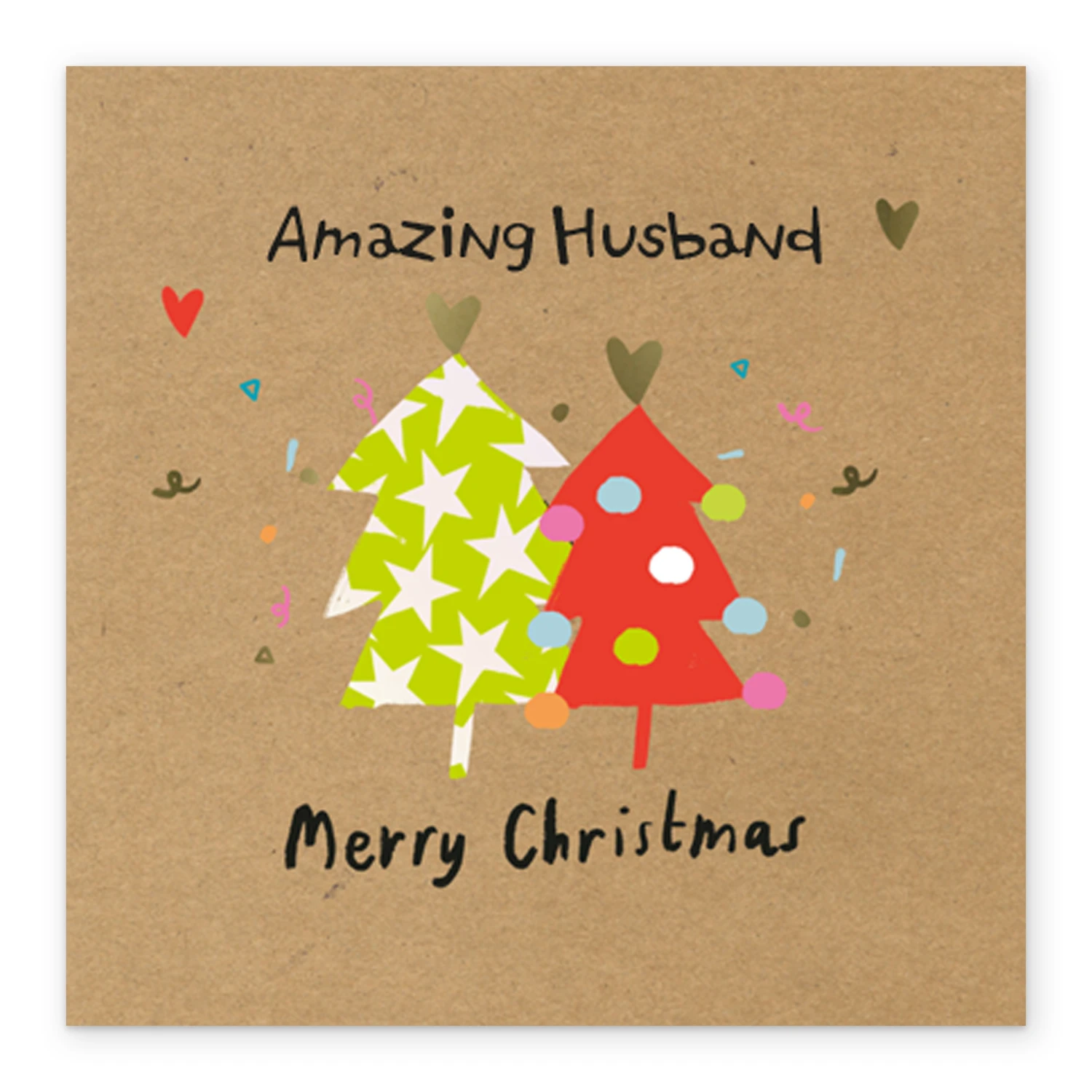 Show them you care with a personalised husband modern colourful trees Christmas card from Hallmark. Our greetings cards are printed on premium quality, FSC®-certified card & delivered nationwide. This card is available as standard 12cm by 12cm and large 15cm by 15cm.