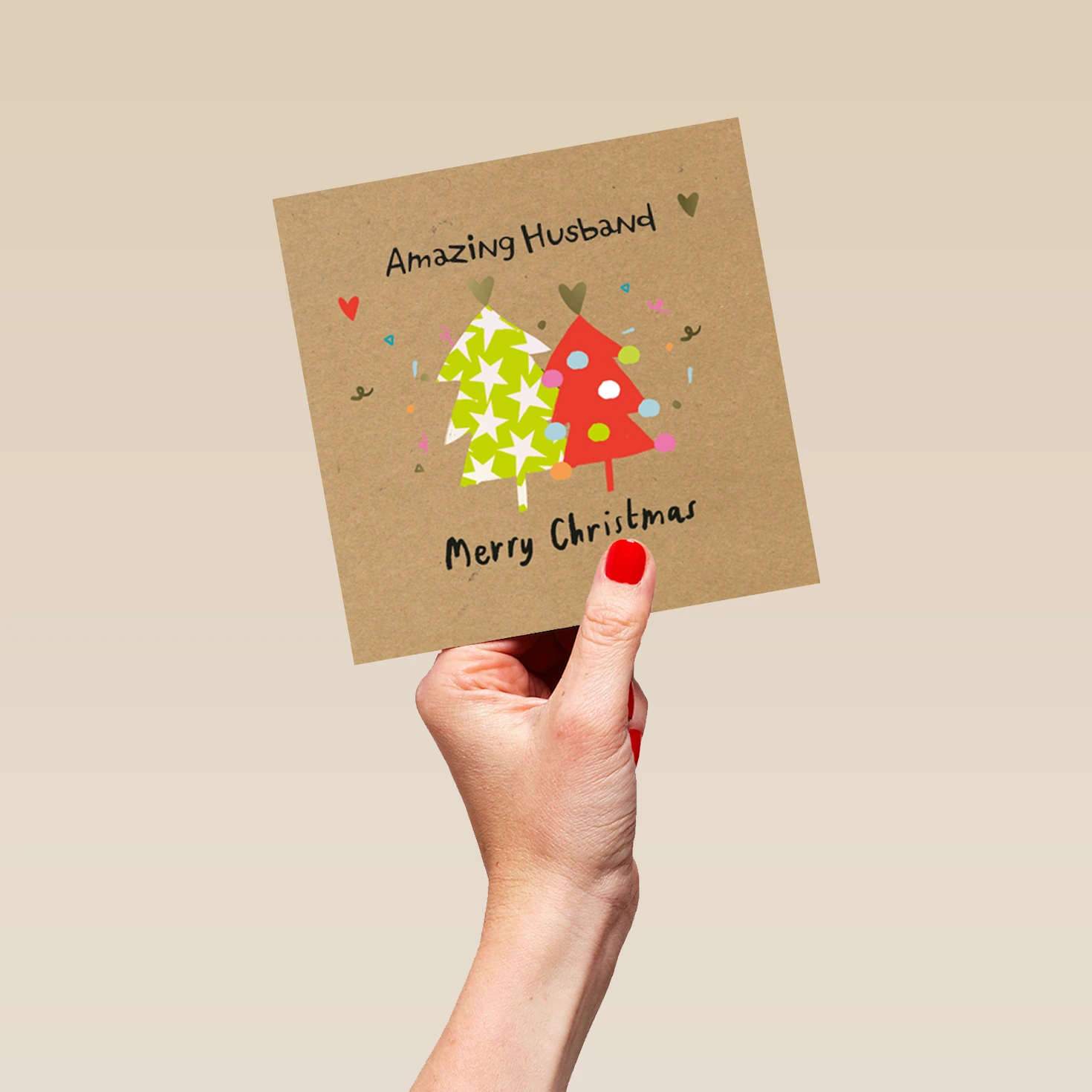 Pod Personalised Husband Modern Colourful Trees Christmas Card