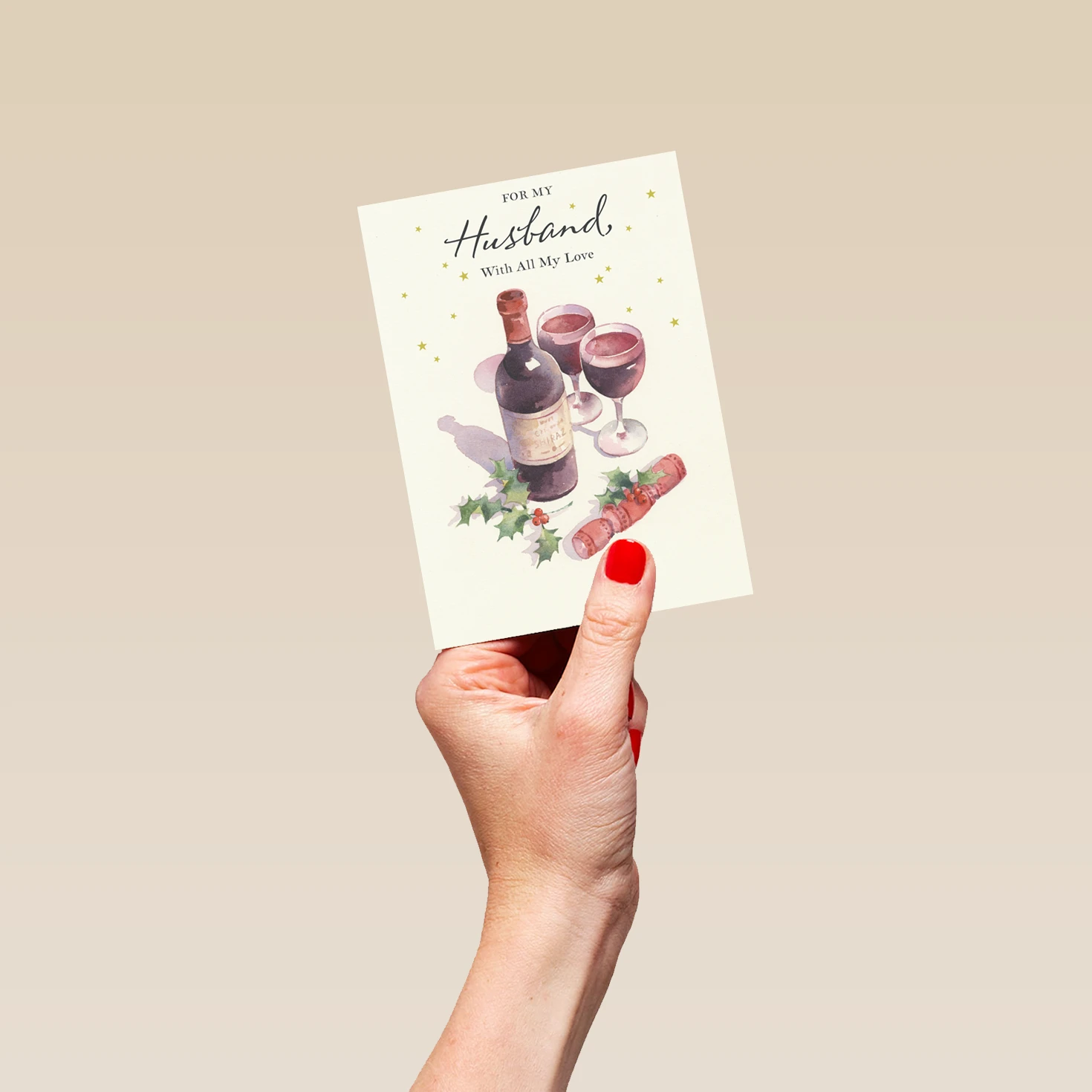 Show them you care with a personalised husband wine traditional card from Hallmark. Our Christmas cards are printed on premium quality, FSC®-certified card & delivered nationwide. This card is available as standard 12cm by 16.7cm and large 15.5cm by 21.6cm.
