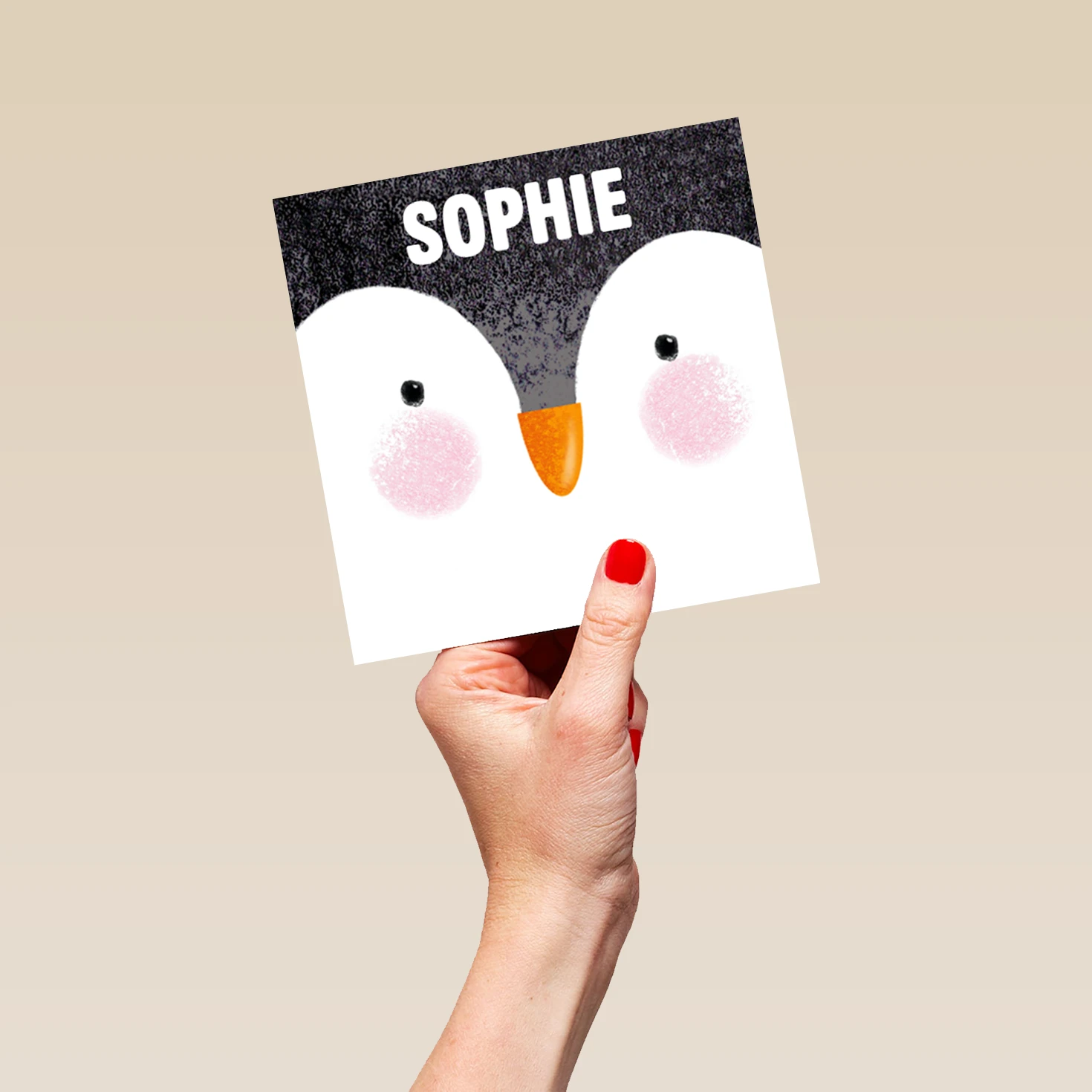 Show them you care with a personalised kids Christmas penguin face card from Hallmark. Our greetings cards are printed on premium quality, FSC®-certified card & delivered nationwide. This card is available as standard 12cm by 12cm and large 15cm by 15cm.