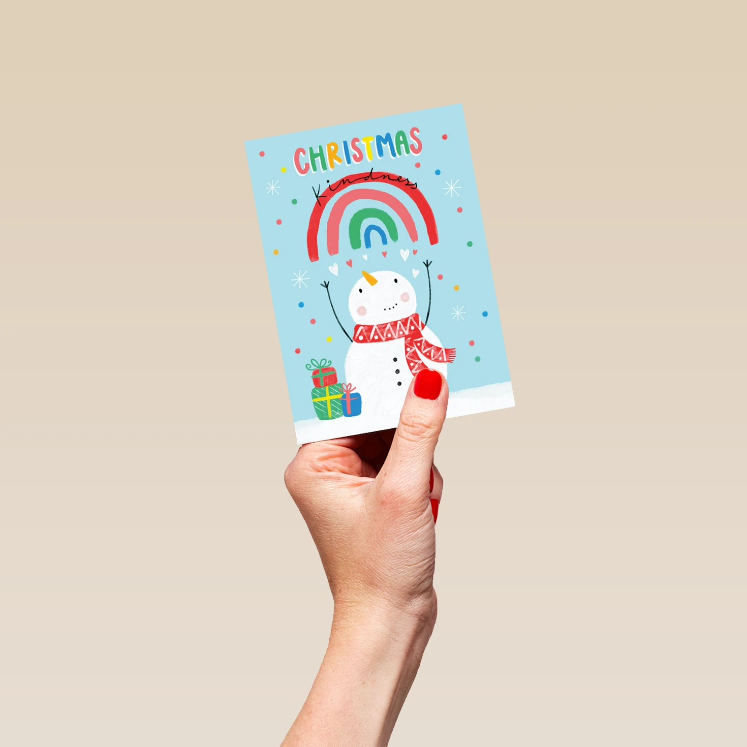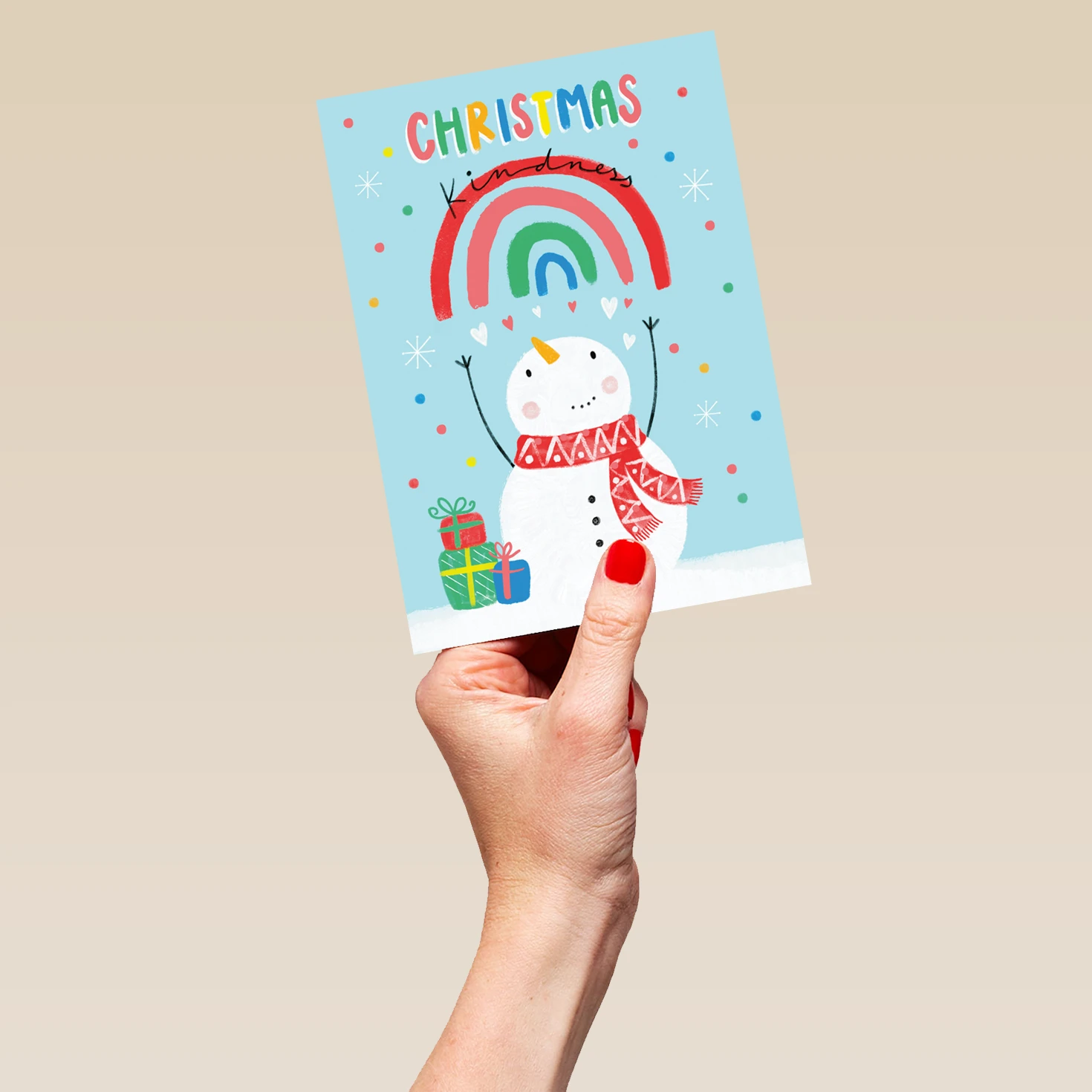 Pod Personalised Kids Christmas Snowman Rainbow Cute Card