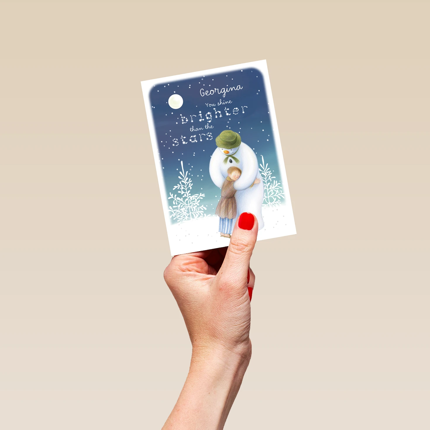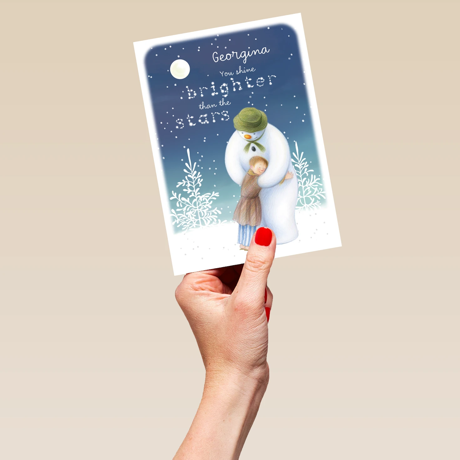 Hug your loved ones tight and celebrate Christmas with the iconic The Snowman™, with this beautiful personalised Christmas card.