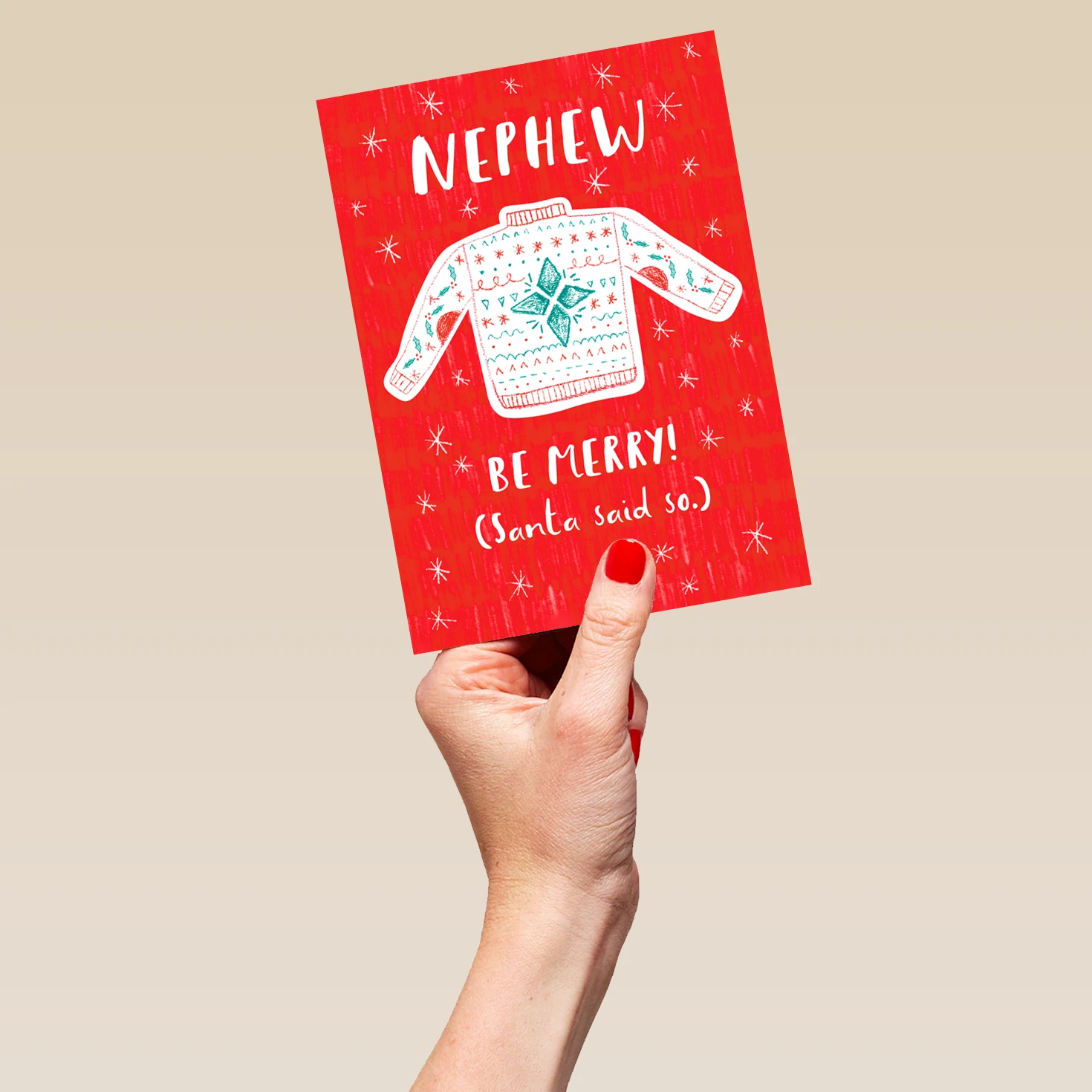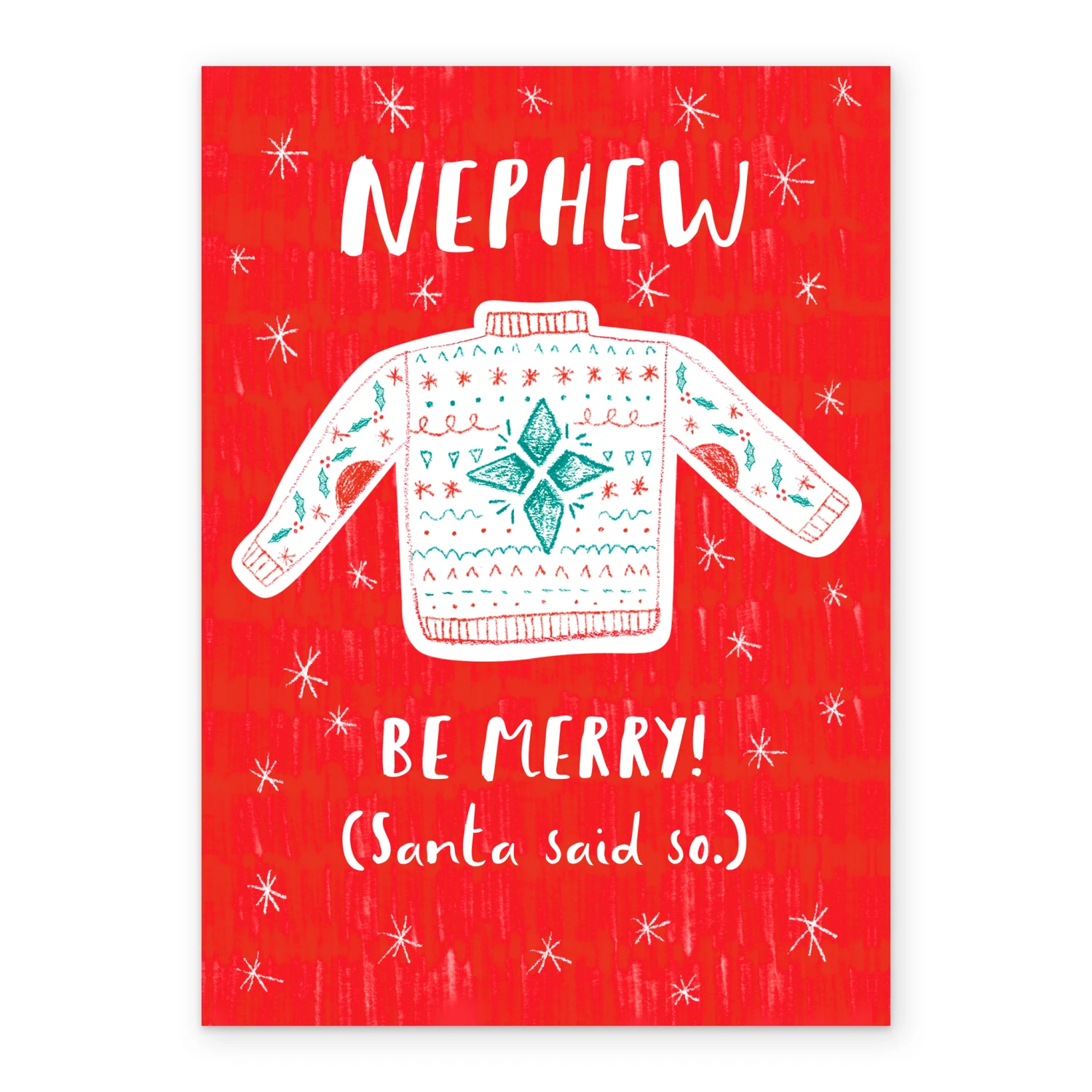 Pod Personalised Merry Christmas Jumper Nephew Christmas Card