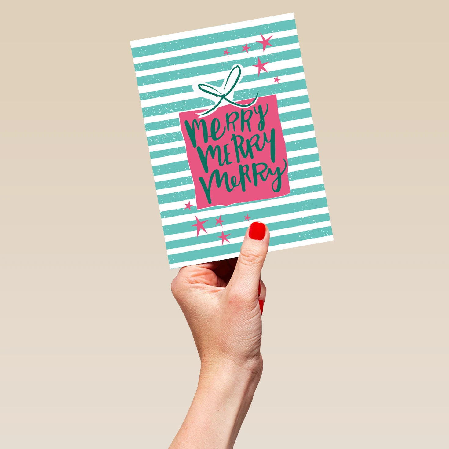 Pod Personalised Merry Merry Merry Gift Christmas Card