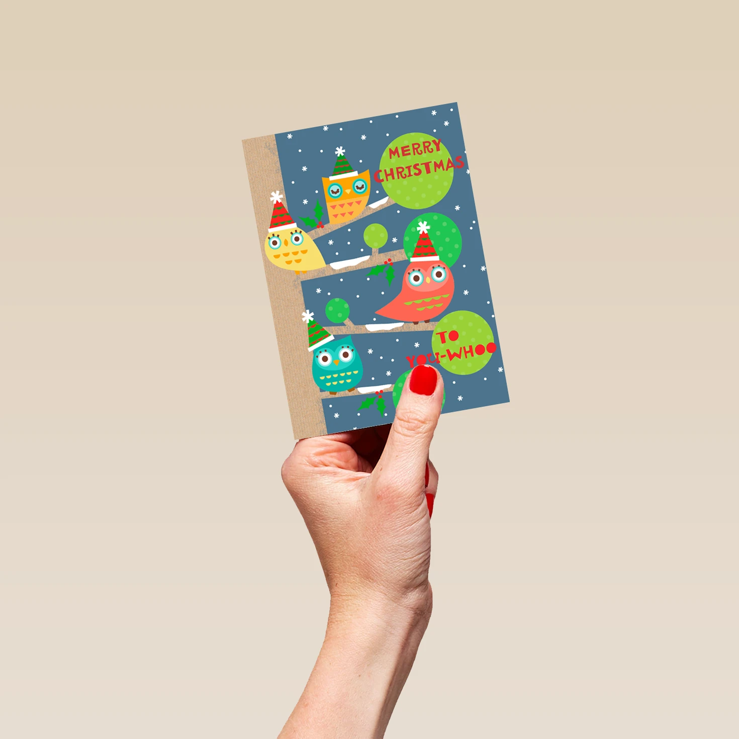 Show them you care with a personalised merry owls card from Hallmark. Our Christmas cards are printed on premium quality, FSC®-certified card & delivered nationwide. This card is available as standard 12cm by 16.7cm and large 15.5cm by 21.6cm.