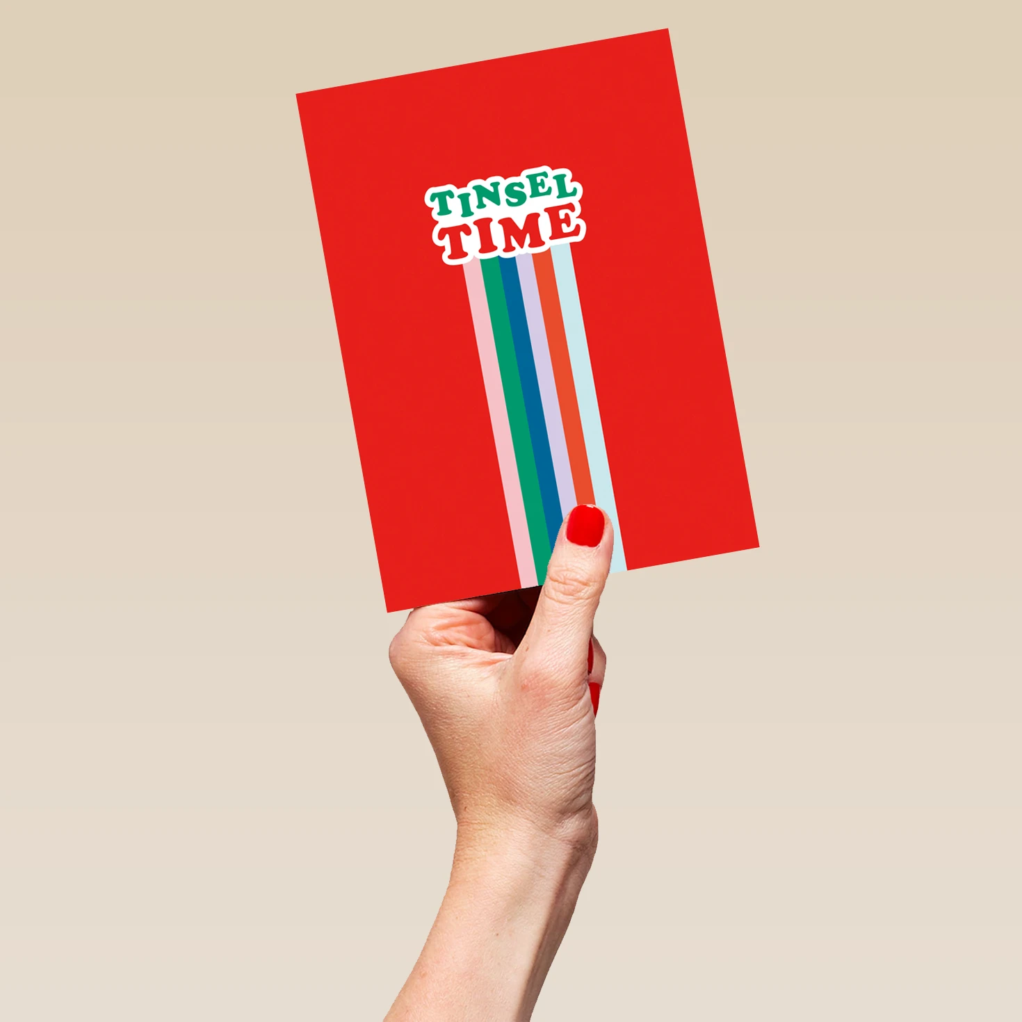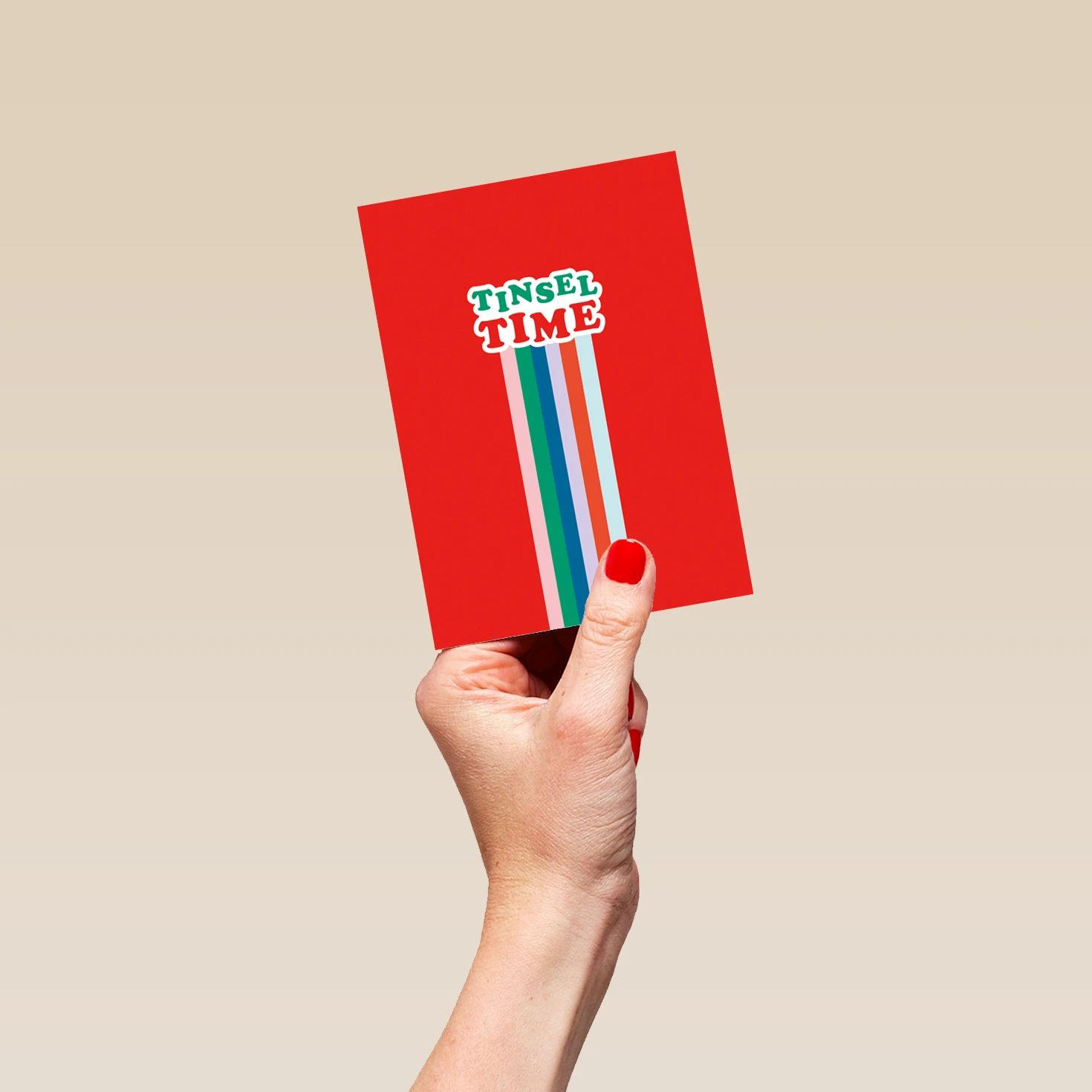 Pod Personalised Modern Christmas Retro Stripe Tinsel Time Card