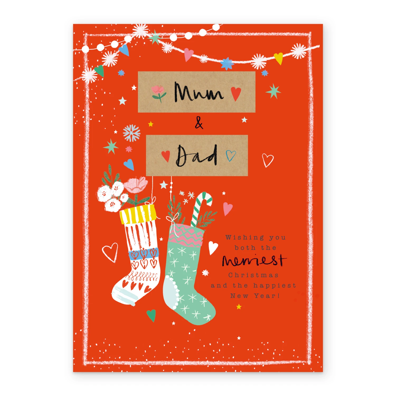 Show them you care with a personalised mum & dad Christmas stockings card from Hallmark. Our Christmas cards are printed on premium quality, FSC®-certified card & delivered nationwide. This card is available as standard 12cm by 16.7cm and large 15.5cm by 21.6cm.
