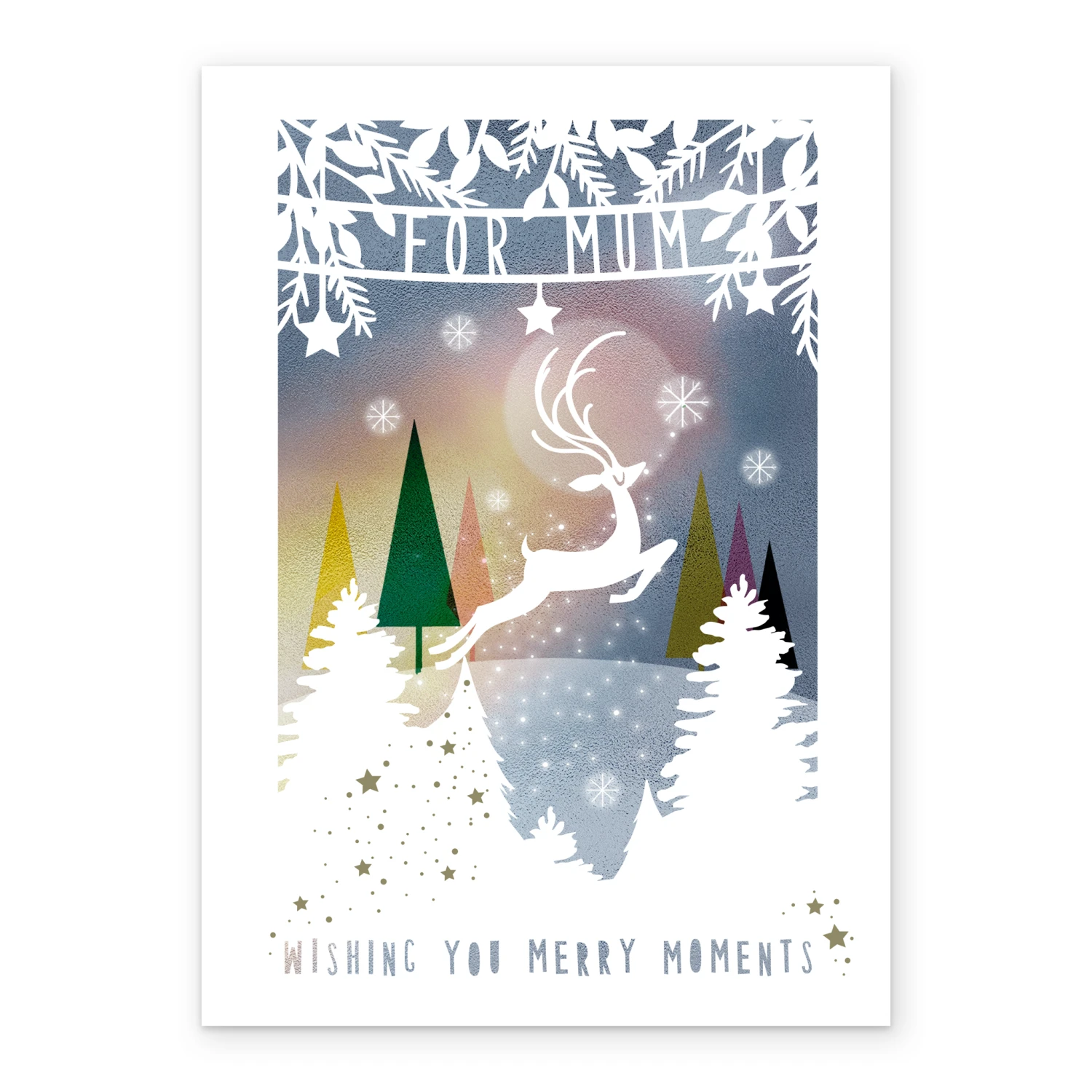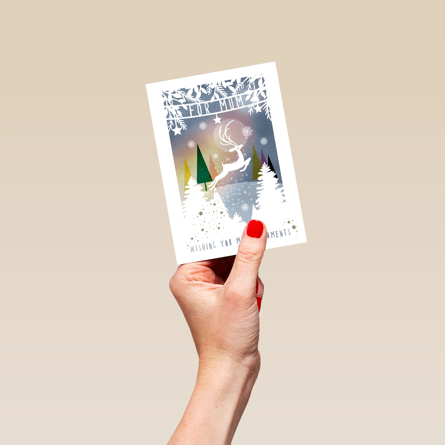 Pod Personalised Mum Reindeer And Snow Christmas Card