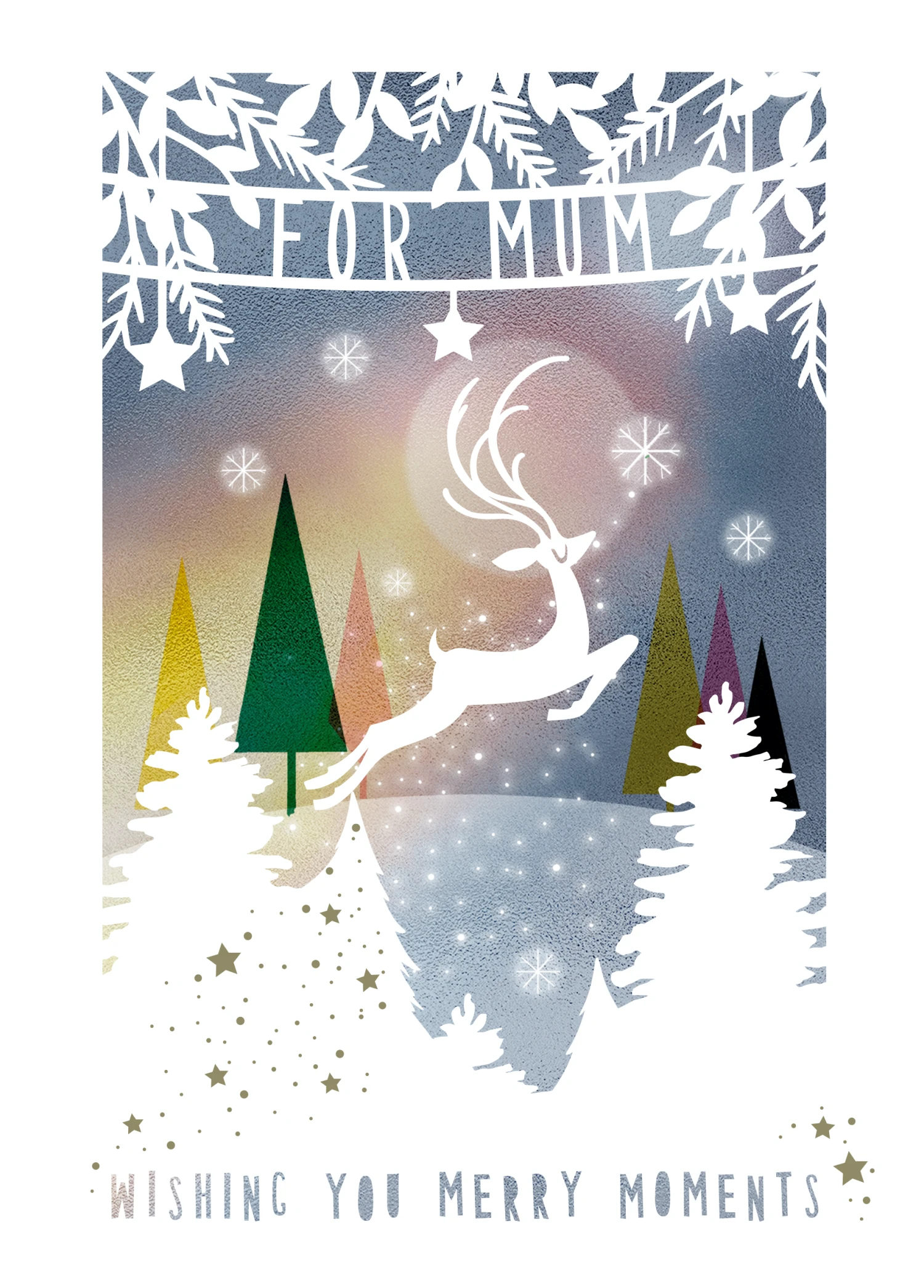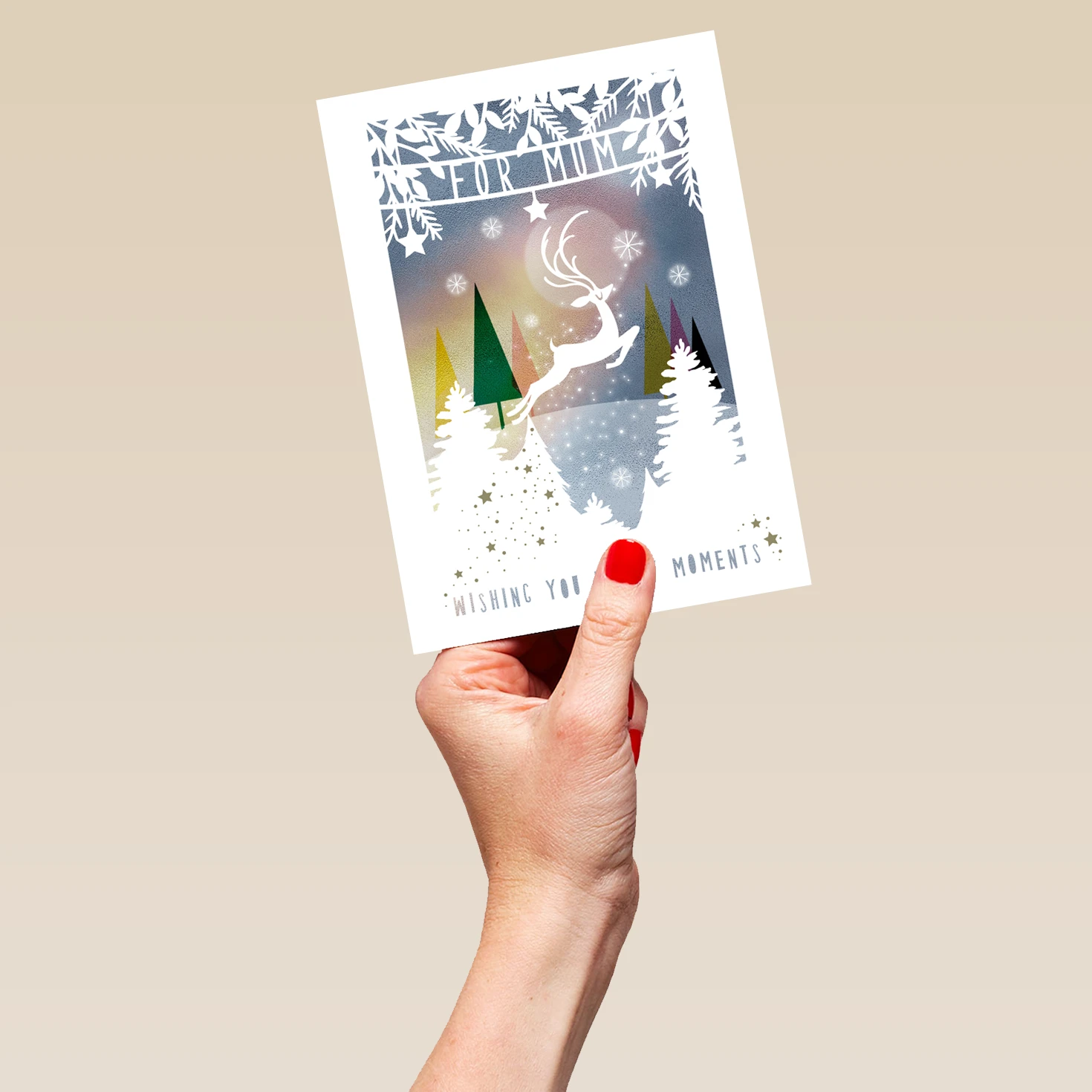 Show them you care with a personalised mum reindeer and snow Christmas card from Hallmark. Our greetings cards are printed on premium quality, FSC®-certified card & delivered nationwide. This card is available as standard 12cm by 16.7cm and large 15.5cm by 21.6cm.
