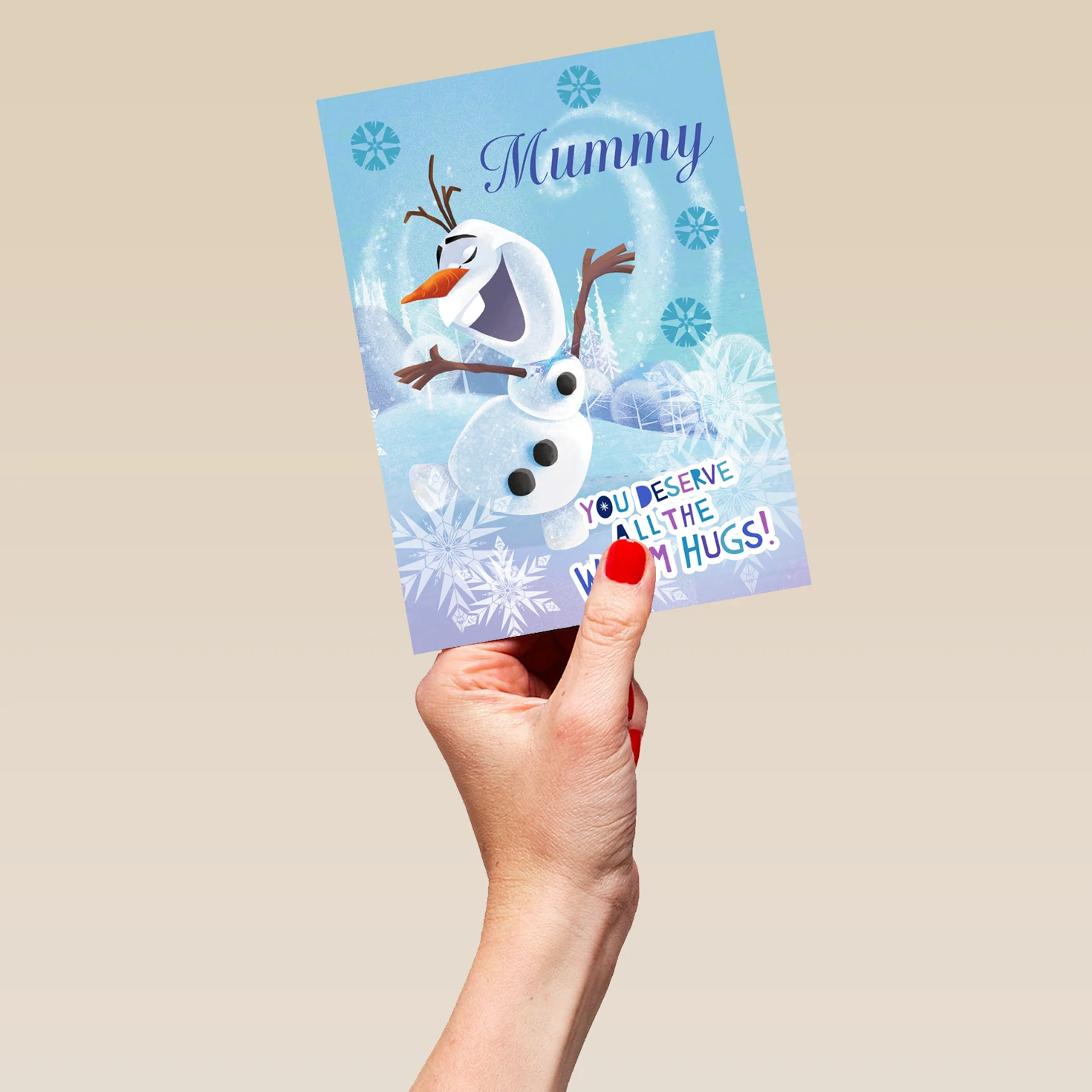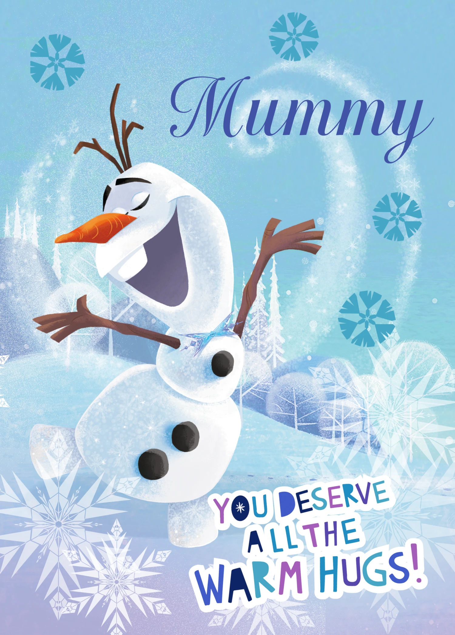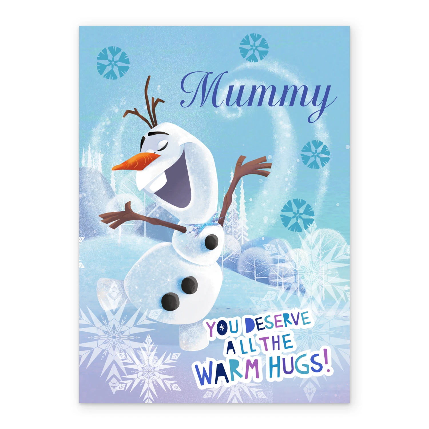 Show them you care with a personalised & editable Disney Frozen Christmas card for mummy from Hallmark. Our Christmas cards are printed on premium quality, FSC®-certified card & delivered nationwide. This card is available as standard 12cm by 16.7cm and large 15.5cm by 21.6cm.