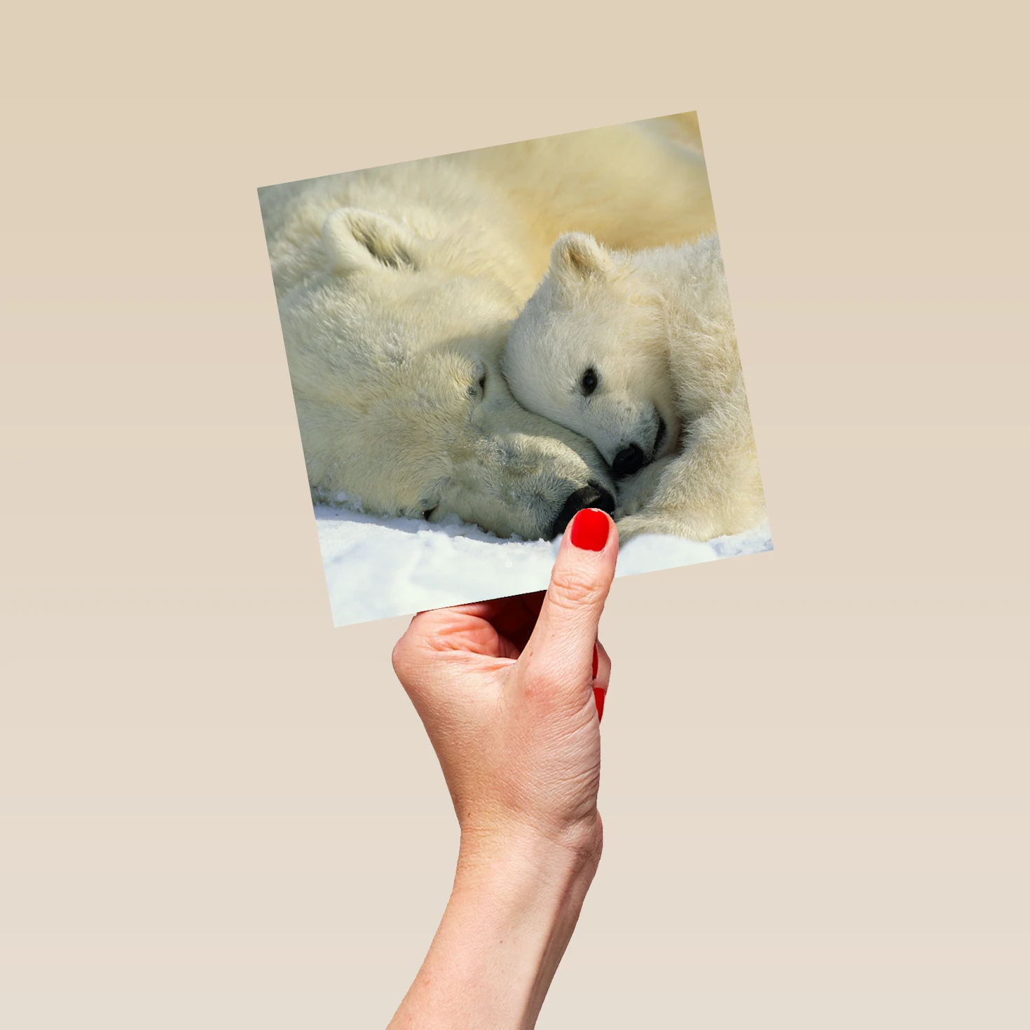 Printed on premium-quality board, this card features polar bears cuddling, and comes complete with a co-ordinating white envelope.