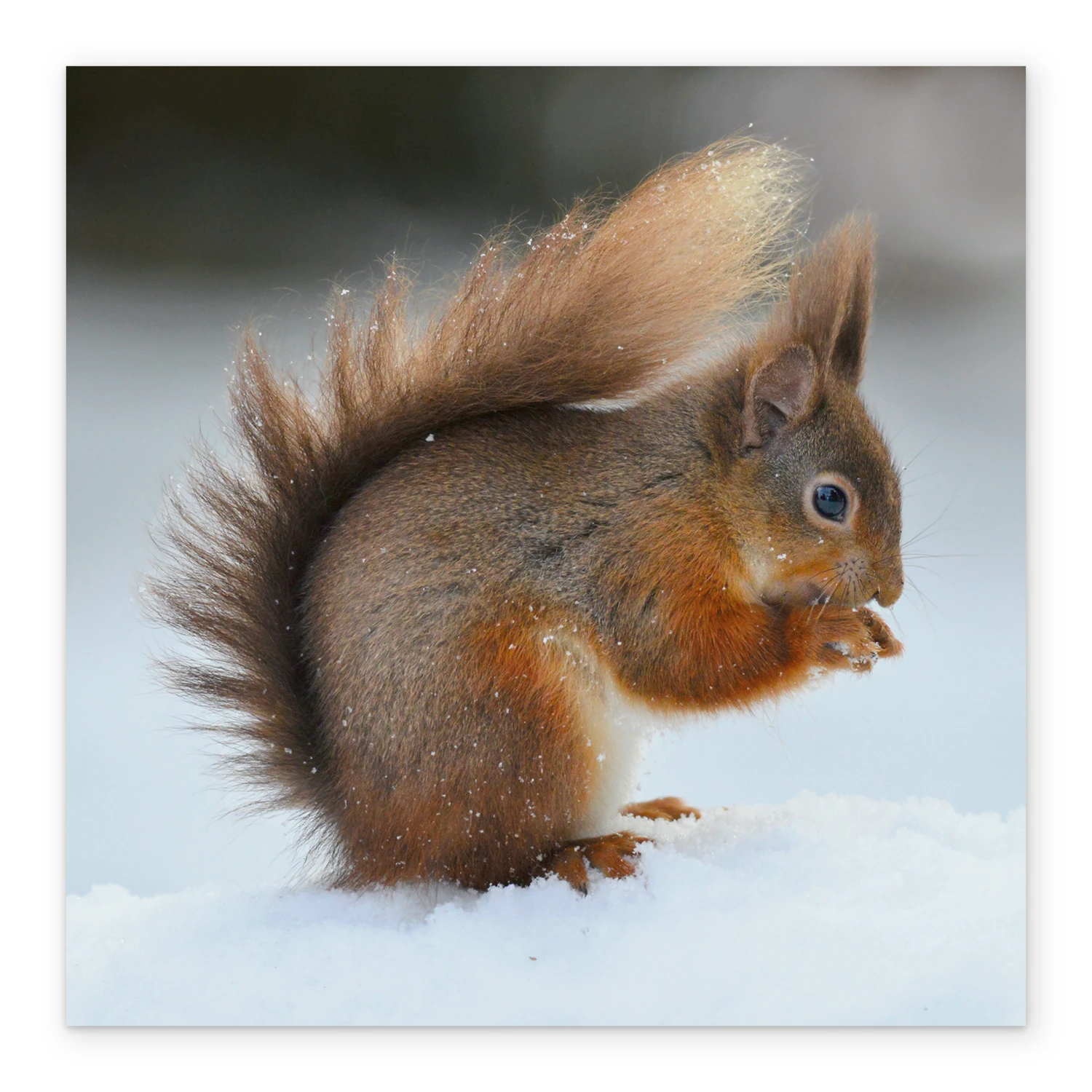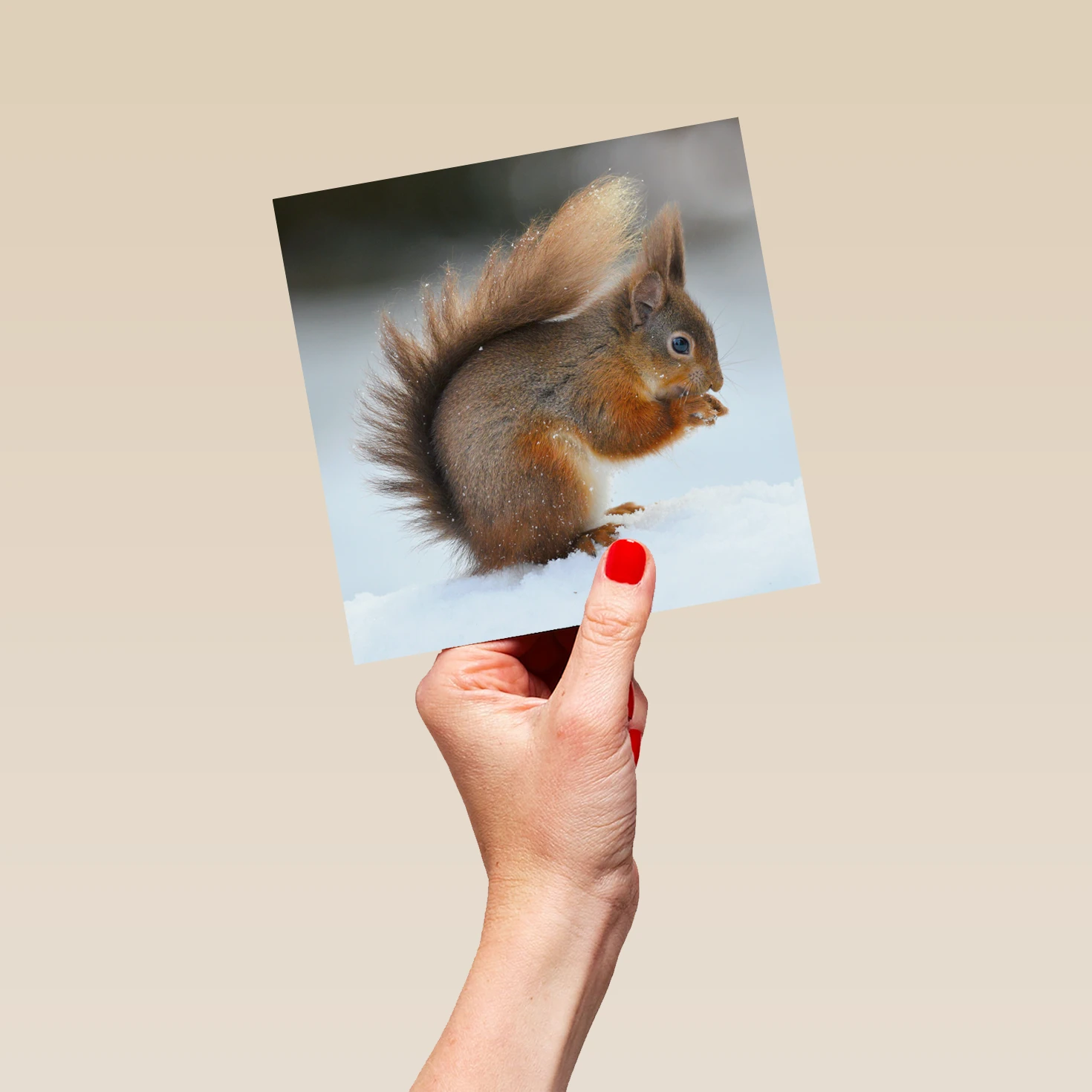 Printed on premium-quality board, this card features a red squirrel in the snow, and comes complete with a co-ordinating white envelope.