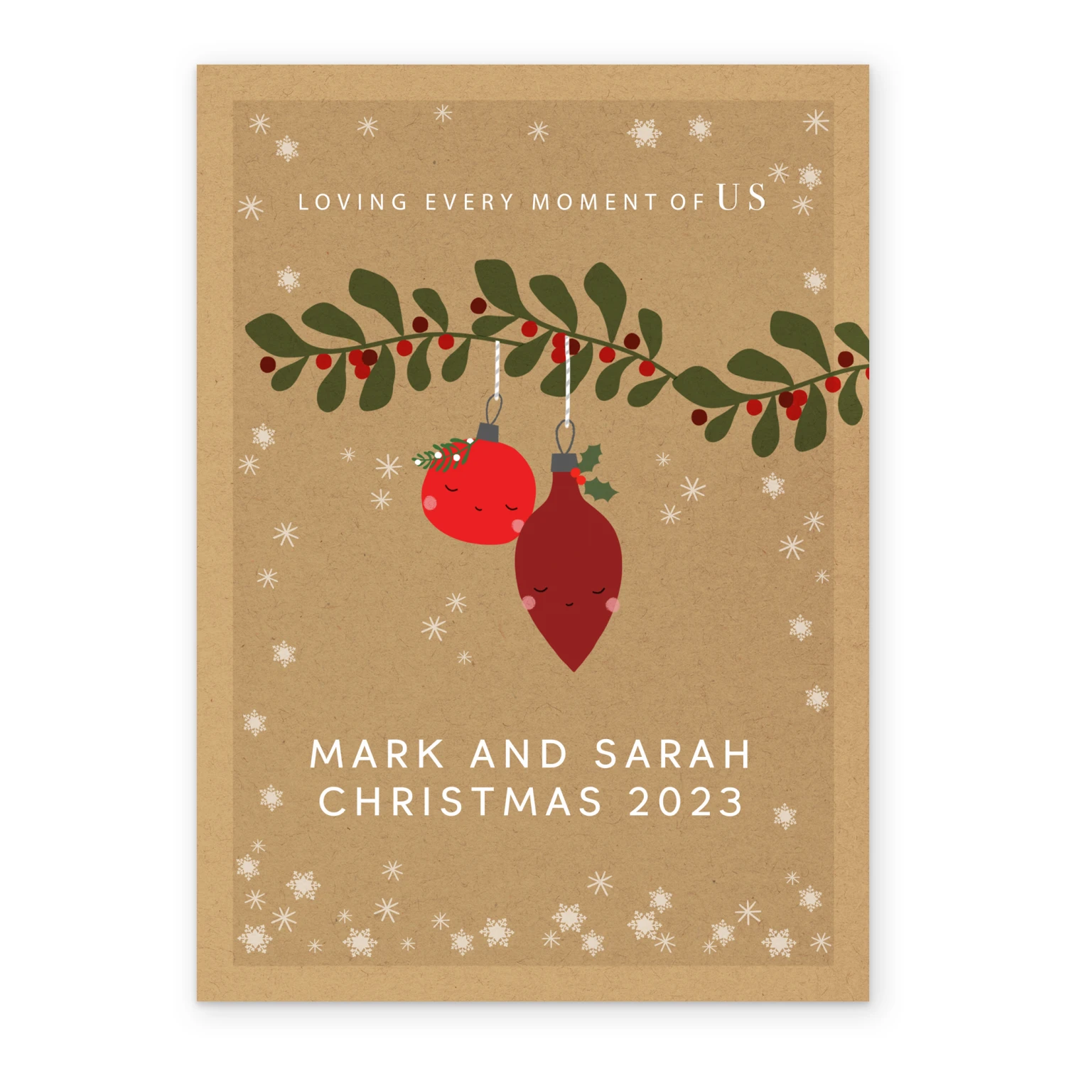 Pod Personalised One I Love Baubles Foliage Christmas Card