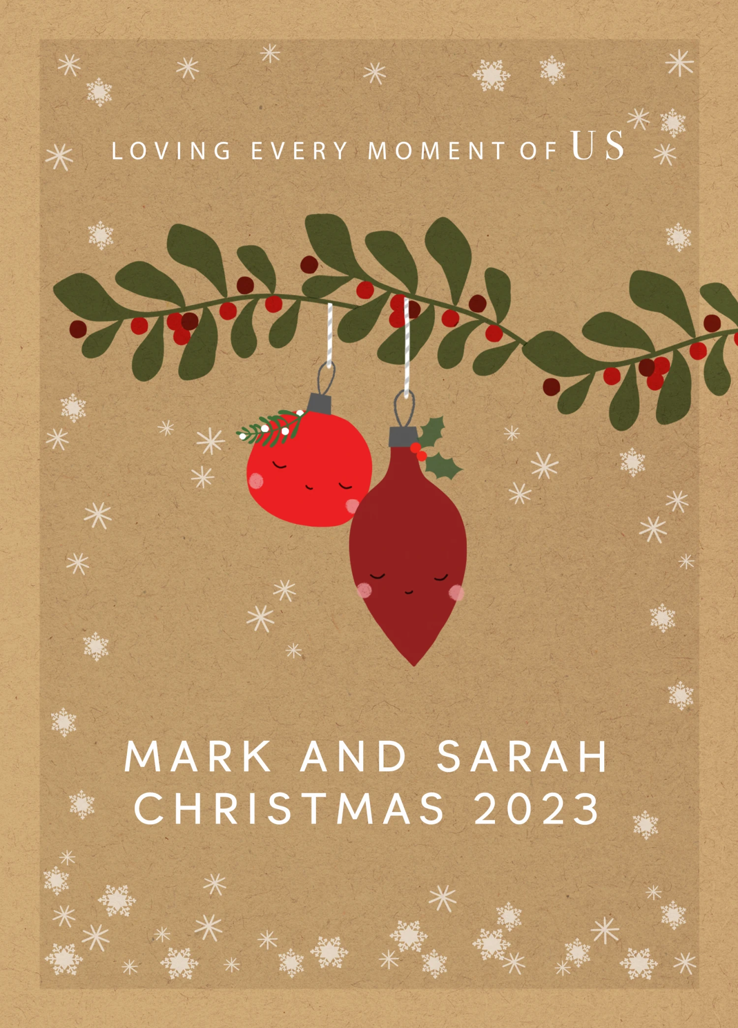 Show them you care with a personalised one I love baubles foliage Christmas card from Hallmark. Our greetings cards are printed on premium quality, FSCĀ®-certified card & delivered nationwide. This card is available as standard 12cm by 16.7cm and large 15.5cm by 21.6cm.