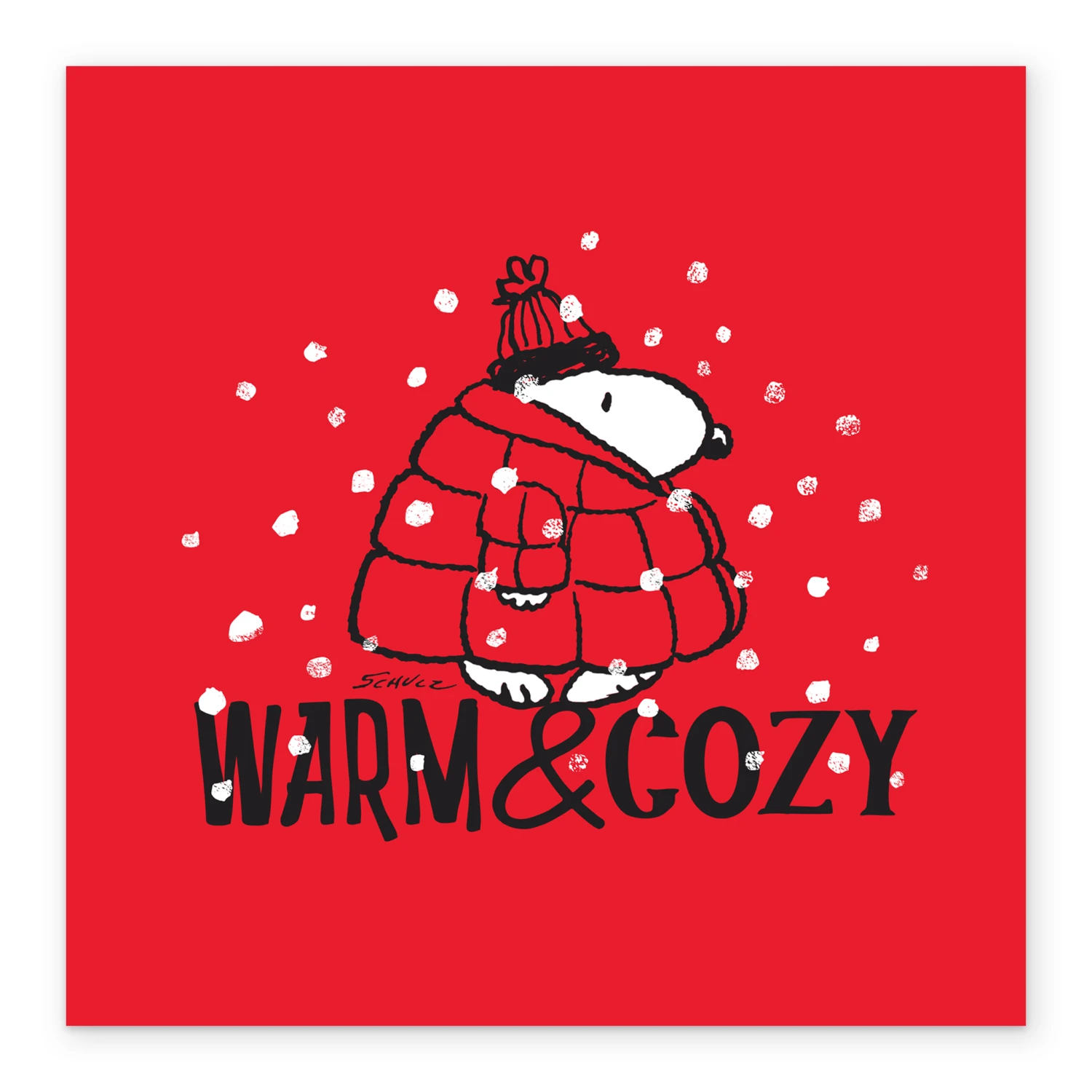 Show them you care with a personalised PEANUTS SNOOPY cosy and warm Christmas card from Hallmark. Our Christmas cards are printed on premium quality, FSC®-certified card & delivered nationwide. This card is available as standard 12cm by 12cm and large 15cm by 15cm.