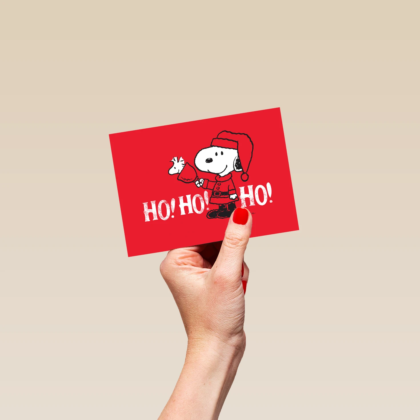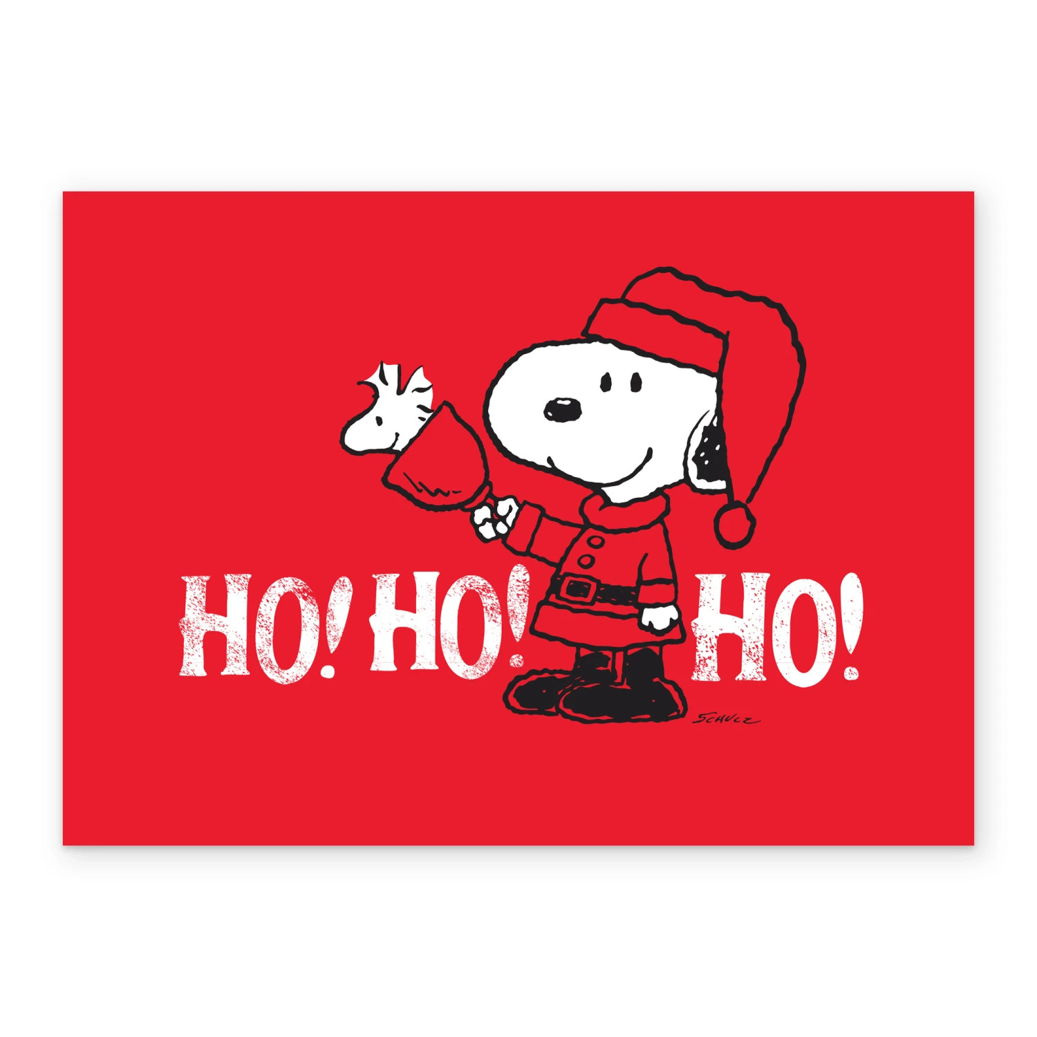 Show them you care with a personalised PEANUTS SNOOPY Ho! Ho! Ho! Christmas card from Hallmark. Our Christmas cards are printed on premium quality, FSC®-certified card & delivered nationwide. This card is available as standard 16.7cm by 12cm and large 21.6cm by 15.5cm.