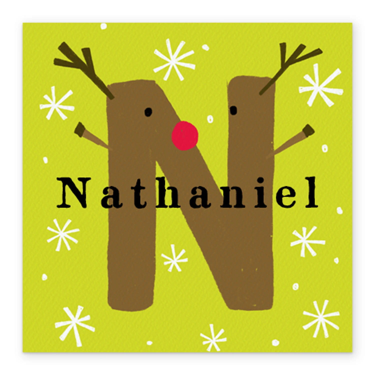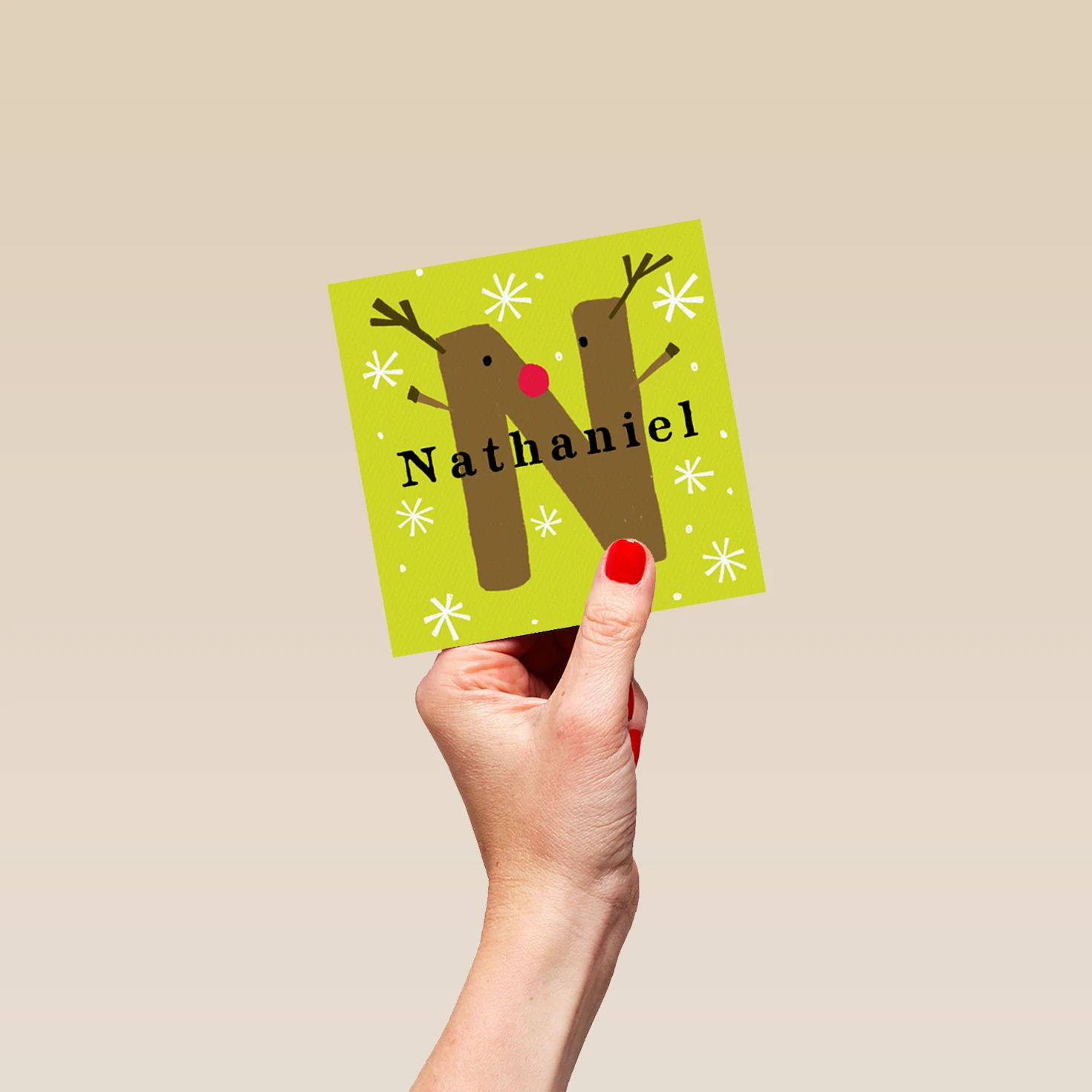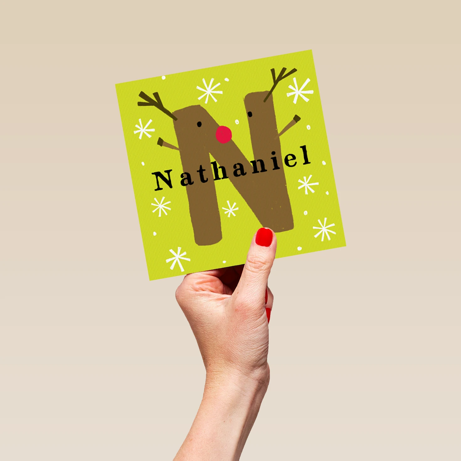 Pod Personalised Reindeer Monogram Letter N Christmas Card