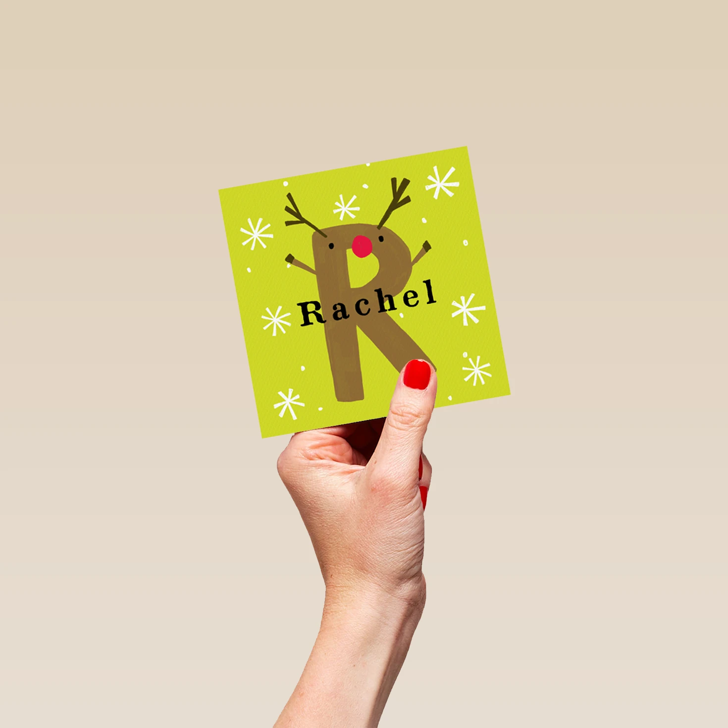 Show them you care with a personalised reindeer monogram letter R Christmas card from Hallmark. Our greetings cards are printed on premium quality, FSC®-certified card & delivered nationwide. This card is available as standard 12cm by 12cm and large 15cm by 15cm.